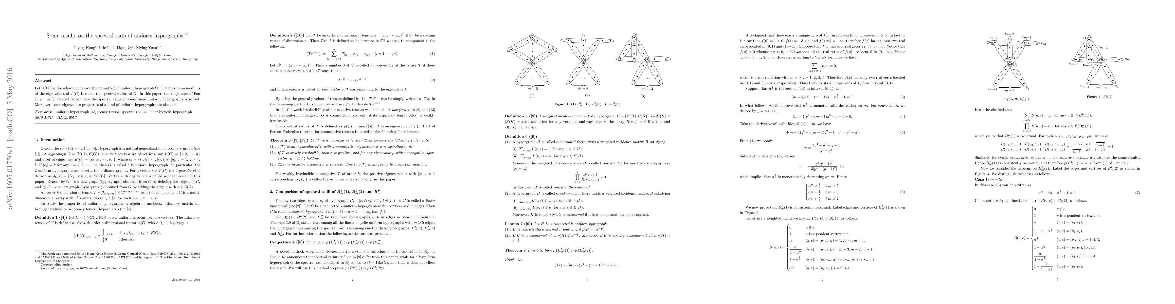 This paper resolves a conjecture comparing the spectral radii of specific three uniform hypergraphs and presents new eigenvalue properties of a particular class of uniform hypergraphs, utilizing the adjacency tensor to determine these spectral radii.
