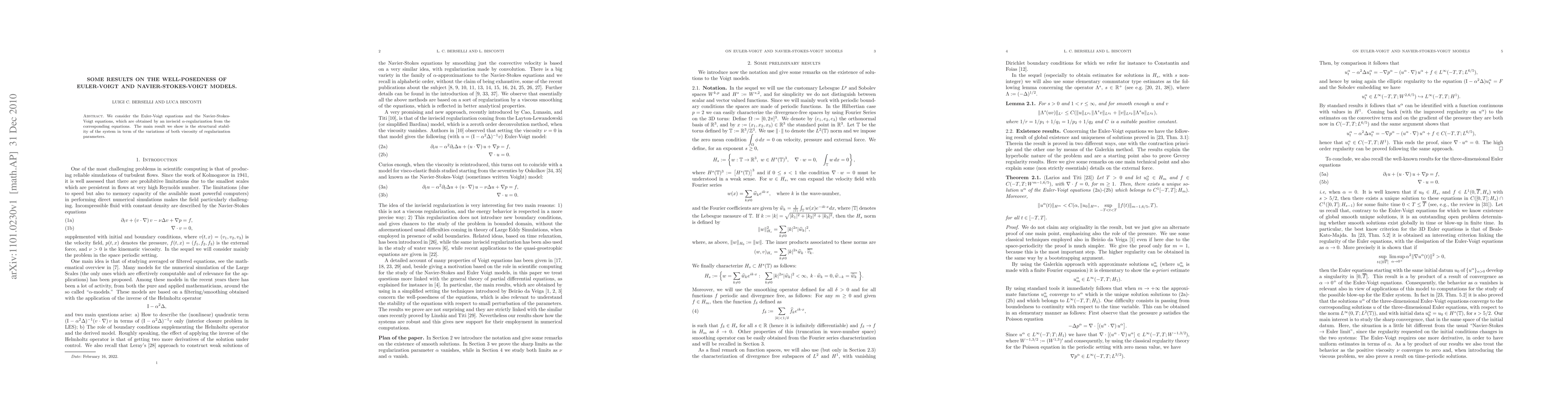 Summary: This paper investigates the Euler-Voigt and Navier-Stokes-Voigt models, demonstrating structural stability under variations in viscosity and regularization parameters, thereby ensuring well-posedness of these inviscid alpha-regularized fluid dynamics models.