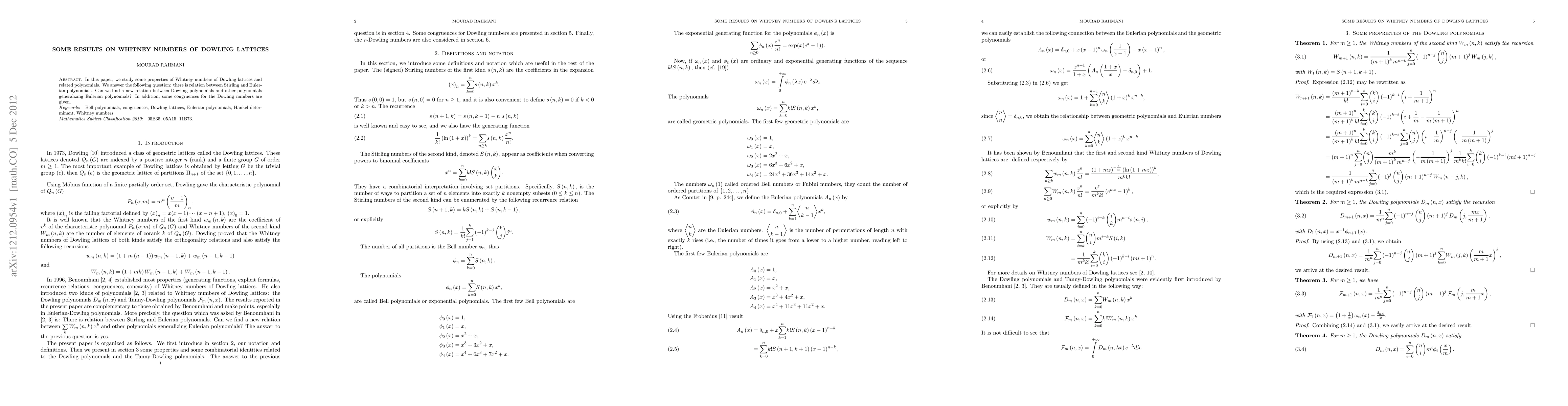 This paper investigates the properties of Whitney numbers in Dowling lattices and explores potential new relations between Dowling polynomials and other combinatorial polynomials, such as Stirling and Eulerian polynomials, while also presenting new congruences for Dowling numbers.