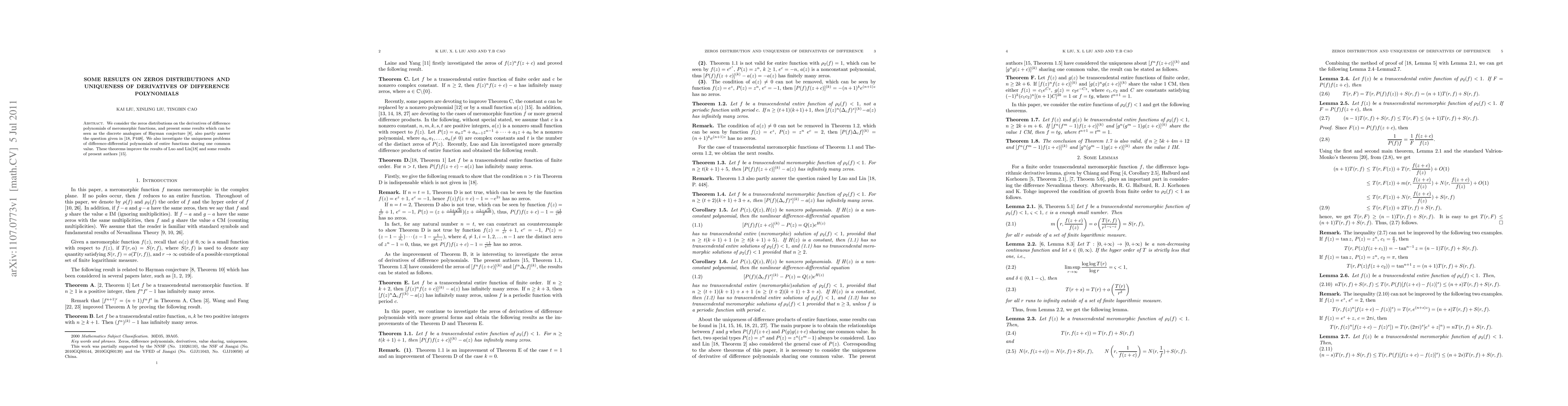 We consider the zeros distributions on the derivatives of difference polynomials of meromorphic functions, and present some results which can be seen as the discrete analogues of Hayman conjecture \cite{hayman1}, also partly answer the question given in \cite[P448]{luolin}. We also investigate the uniqueness problems of difference-differential polynomials of entire functions sharing one common value. These theorems improve the results of Luo and Lin\cite{luolin} and some results of present authors \cite{liuliucao}.