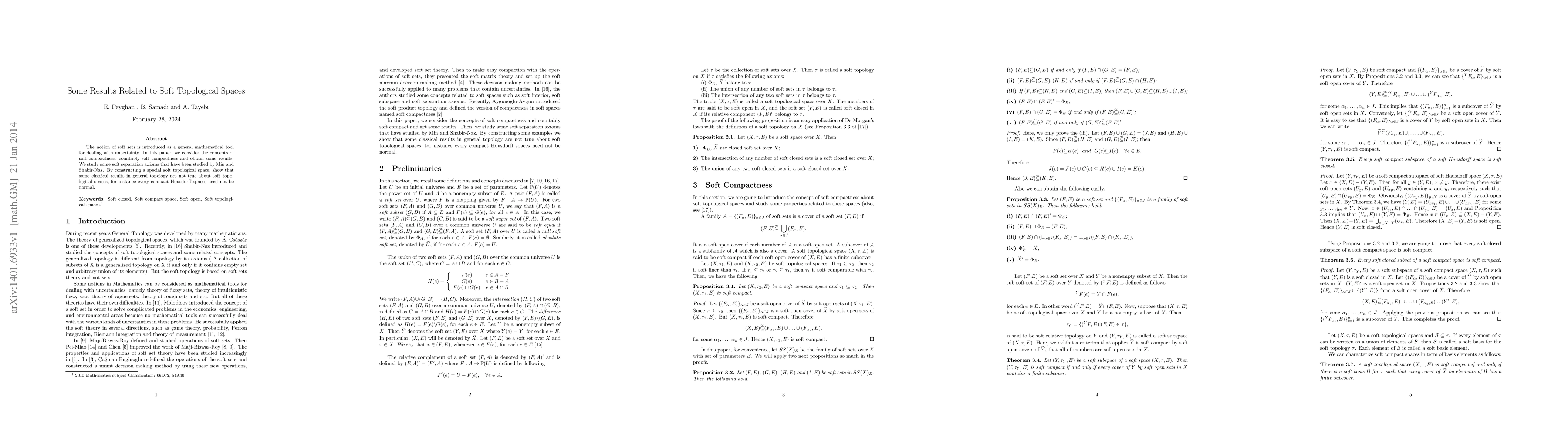 This paper introduces soft sets as a tool for handling uncertainty and examines soft compactness, countably soft compactness, and soft separation axioms. It demonstrates that classical results in general topology do not apply to soft topological spaces, such as the non-normality of compact Hausdorff spaces in some soft topological contexts.