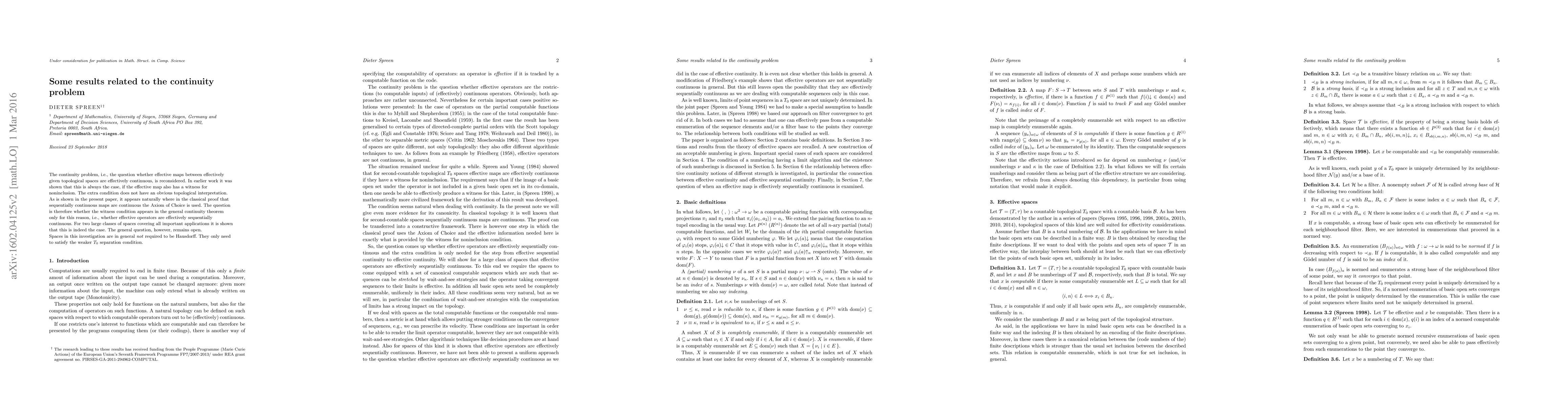 The continuity problem, i.e., the question whether effective maps between effectively given topological spaces are effectively continuous, is reconsidered. In earlier work it was shown that this is always the case, if the effective map also has a witness for noninclusion. The extra condition does not have an obvious topological interpretation. As is shown in the present paper, it appears naturally where in the classical proof that sequentially continuous maps are continuous the Axiom of Choice is used. The question is therefore whether the witness condition appears in the general continuity theorem only for this reason, i.e., whether effective operators are effectively sequentially continuous. For two large classes of spaces covering all important applications it is shown that this is indeed the case. The general question, however, remains open. Spaces in this investigation are in general $\textit{not}$ required to be Hausdorff. They only need to satisfy the weaker $T_0$ separation condition.