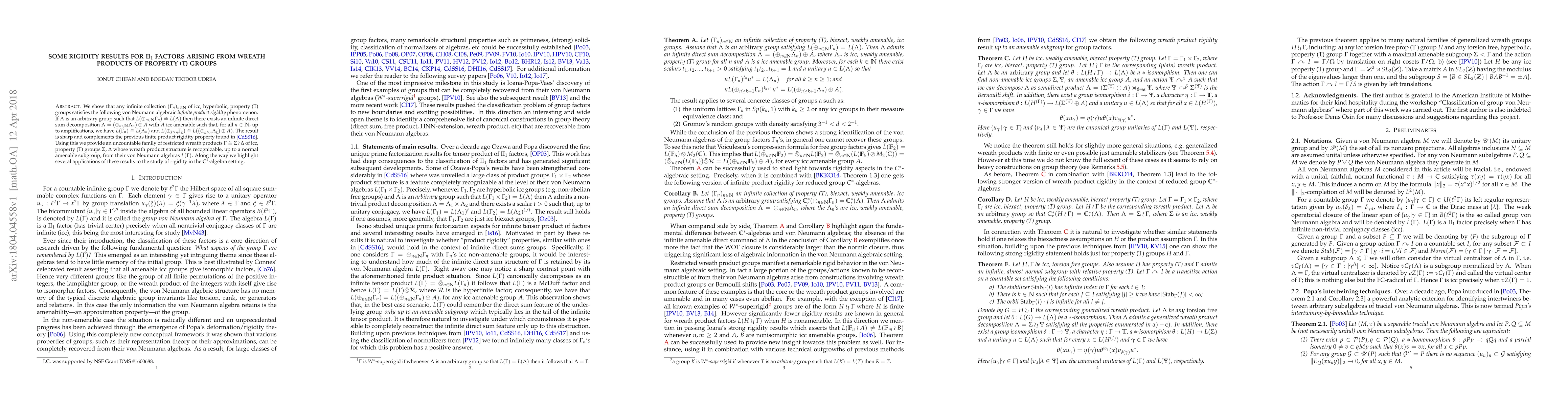 This paper demonstrates infinite product rigidity for von Neumann algebras arising from hyperbolic, property (T) groups, showing that any isomorphic decomposition of their direct sum implies a specific structure in the group itself. It also reveals an uncountable family of recognizable wreath products from their von Neumann algebras, extending previous finite product rigidity results.