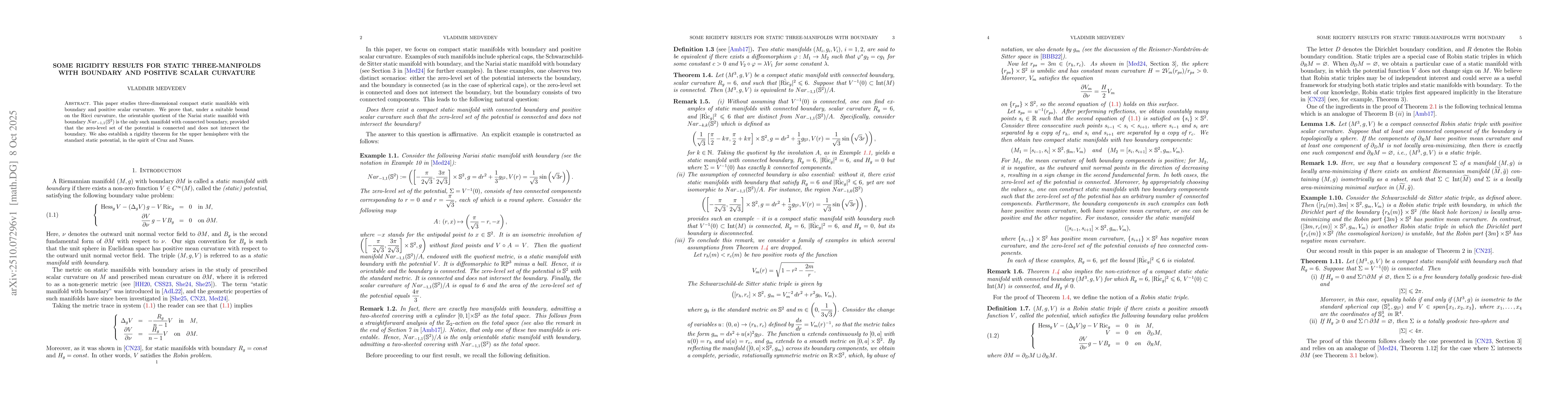 The research employs a combination of geometric analysis, variational methods, and differential equations to study static three-manifolds with boundary, focusing on rigidity theorems and curvature properties.