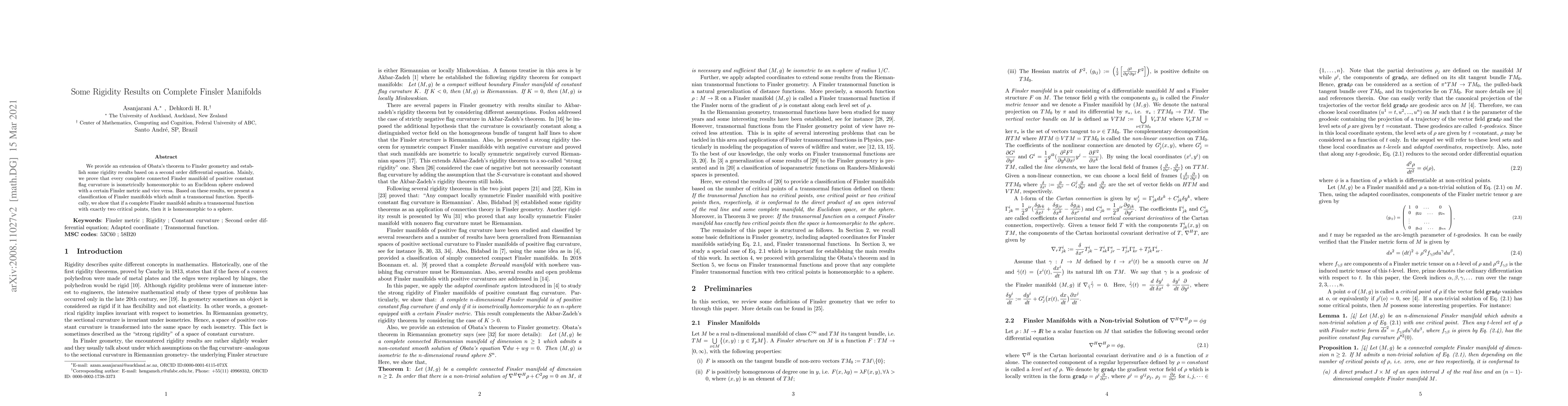 We provide an extension of Obata's theorem to Finsler geometry and establish some rigidity results based on a second order differential equation. Mainly, we prove that every complete connected Finsler manifold of positive constant flag curvature is isometrically homeomorphic to an Euclidean sphere endowed with a certain Finsler metric and vice versa. Based on these results, we present a classification of Finsler manifolds which admit a transnormal function. Specifically, we show that if a complete Finsler manifold admits a transnormal function with exactly two critical points, then it is homeomorphic to a sphere.