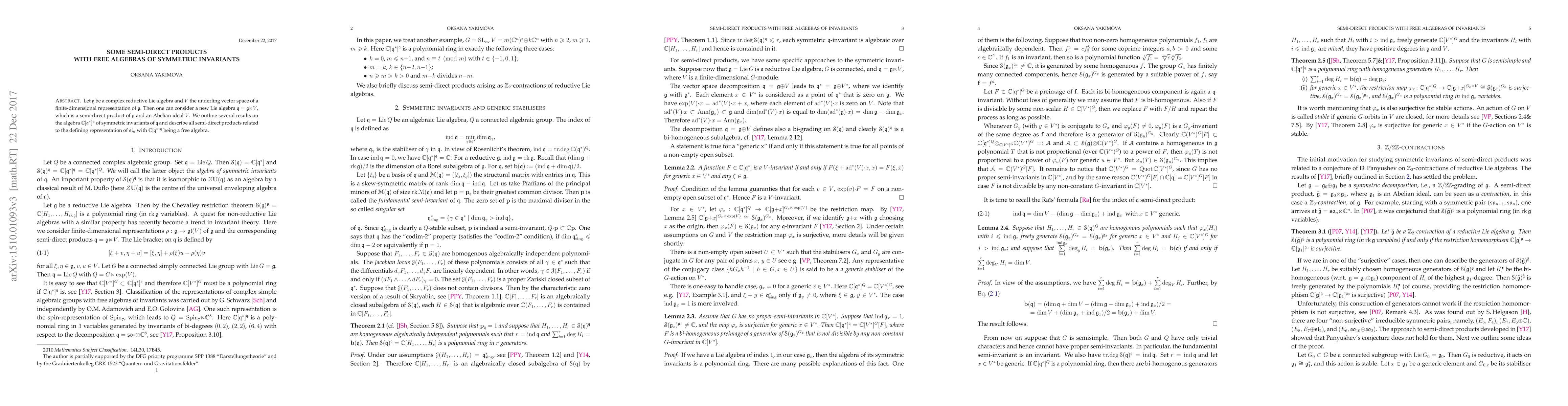 Let $\mathfrak g$ be a complex reductive Lie algebra and $V$ the underling vector space of a finite-dimensional representation of $\mathfrak g$. Then one can consider a new Lie algebra $\mathfrak q=\mathfrak g{\ltimes} V$, which is a semi-direct product of $\mathfrak g$ and an Abelian ideal $V$. We outline several results on the algebra $\mathbb C[\mathfrak q^*]^{\mathfrak q}$ of symmetries invariants of $\mathfrak q$ and describe all semi-direct products related to the defining representation of $\mathfrak{sl}_n$ with $\mathbb C[\mathfrak q^*]^{\mathfrak q}$ being a free algebra.