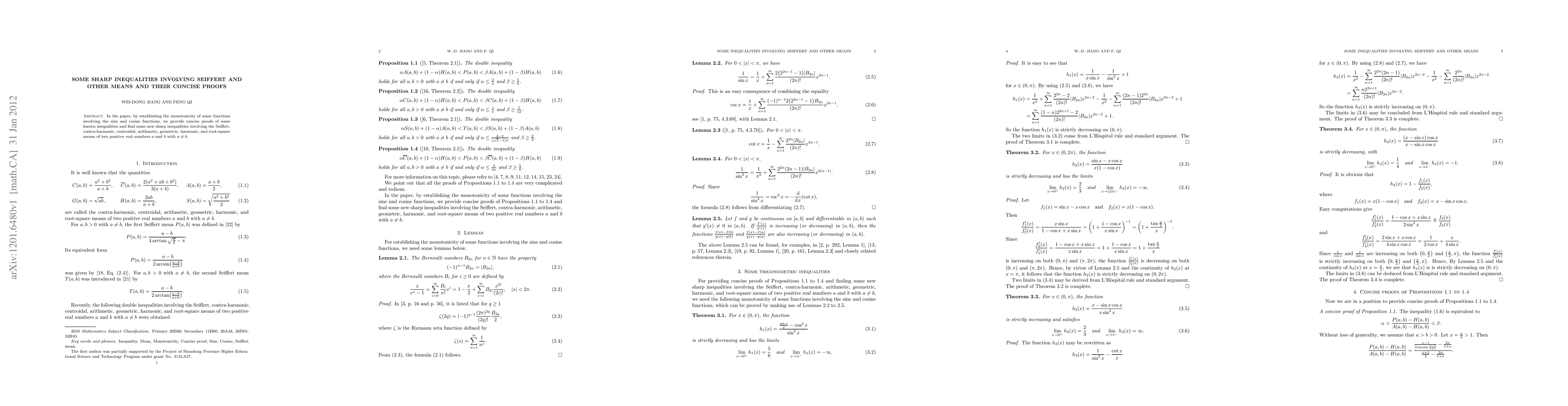 This paper establishes monotonicity of functions involving sine and cosine to concisely prove known inequalities and derive new sharp inequalities involving various means of two distinct positive real numbers.