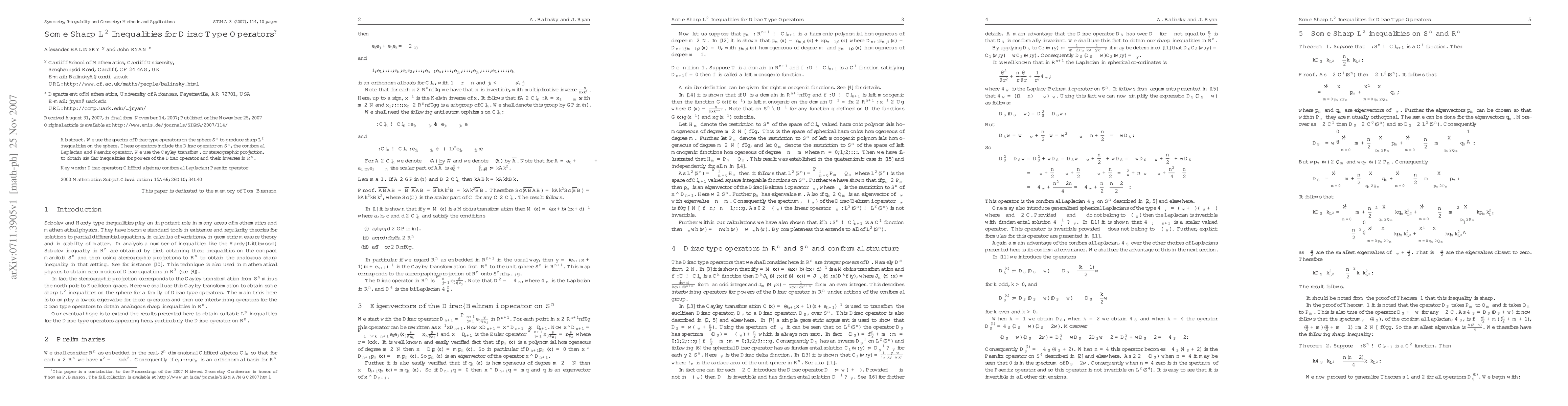 We use the spectra of Dirac type operators on the sphere $S^{n}$ to produce sharp $L^{2}$ inequalities on the sphere. These operators include the Dirac operator on $S^{n}$, the conformal Laplacian and Paenitz operator. We use the Cayley transform, or stereographic projection, to obtain similar inequalities for powers of the Dirac operator and their inverses in $\mathbb{R}^{n}$.