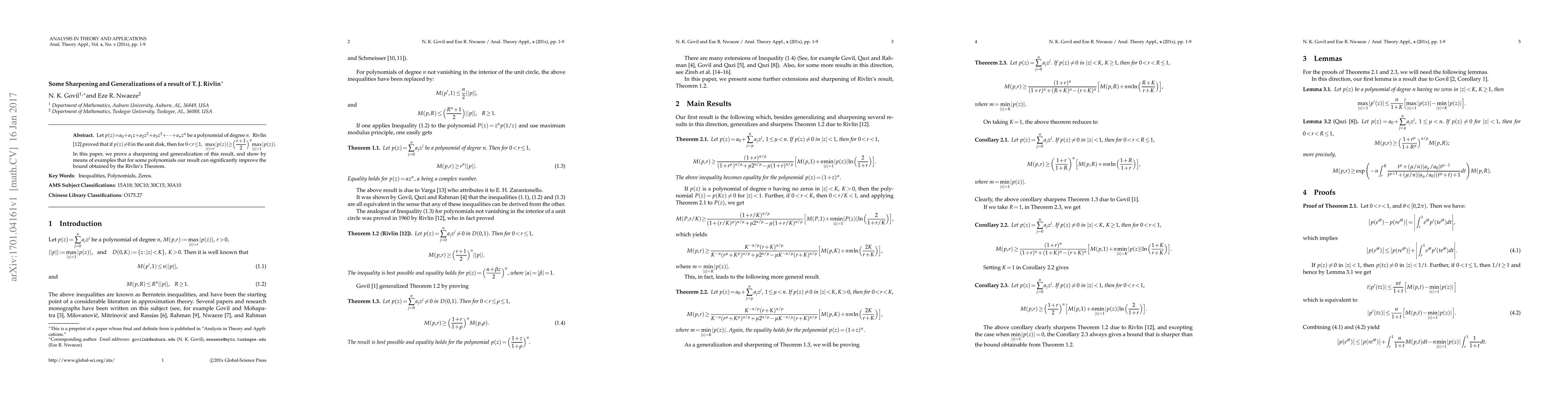 This paper sharpens and generalizes Rivlin's result on the maximum modulus of polynomials within the unit disk, showing that for certain polynomials, the new bound significantly improves upon Rivlin's original theorem. Examples are provided to demonstrate the effectiveness of the new result.