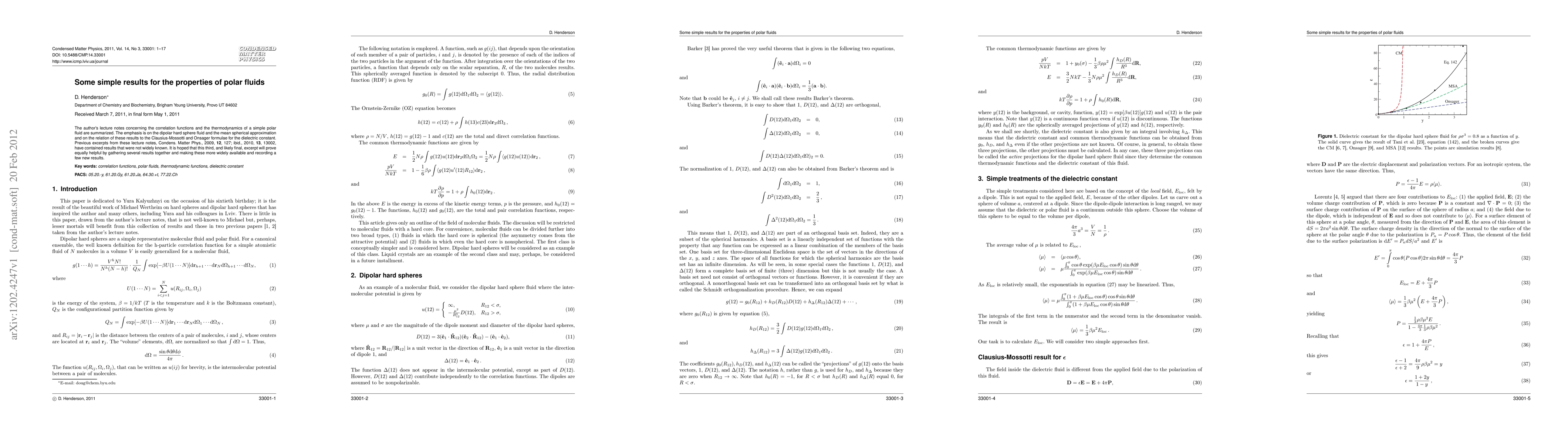 The author's lecture notes concerning the correlation functions and the thermodynamics of a simple polar fluid are summarized. The emphasis is on the dipolar hard sphere fluid and the mean spherical approximation and on the relation of these results to the Clausius-Mossotti and Onsager formulae for the dielectric constant. Previous excerpts from these lecture notes, Condens. Matter Phys., 2009, 12, 127; ibid., 2010, 13, 13002, have contained results that were not widely known. It is hoped that this third, and likely final, excerpt will prove equally helpful by gathering several results together and making these more widely available and recording a few new results.