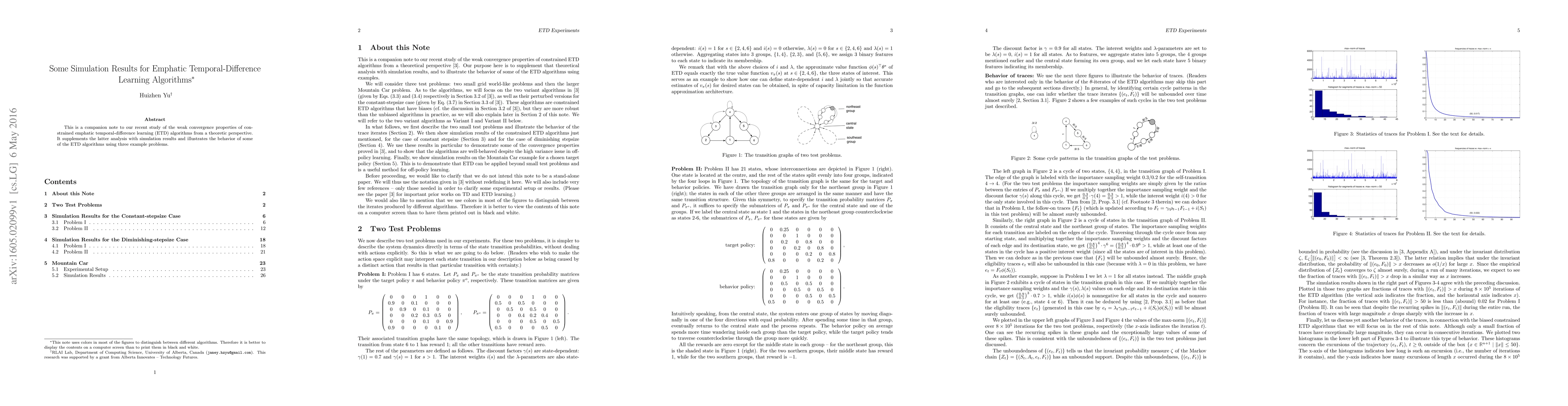 This is a companion note to our recent study of the weak convergence properties of constrained emphatic temporal-difference learning (ETD) algorithms from a theoretic perspective. It supplements the latter analysis with simulation results and illustrates the behavior of some of the ETD algorithms using three example problems.