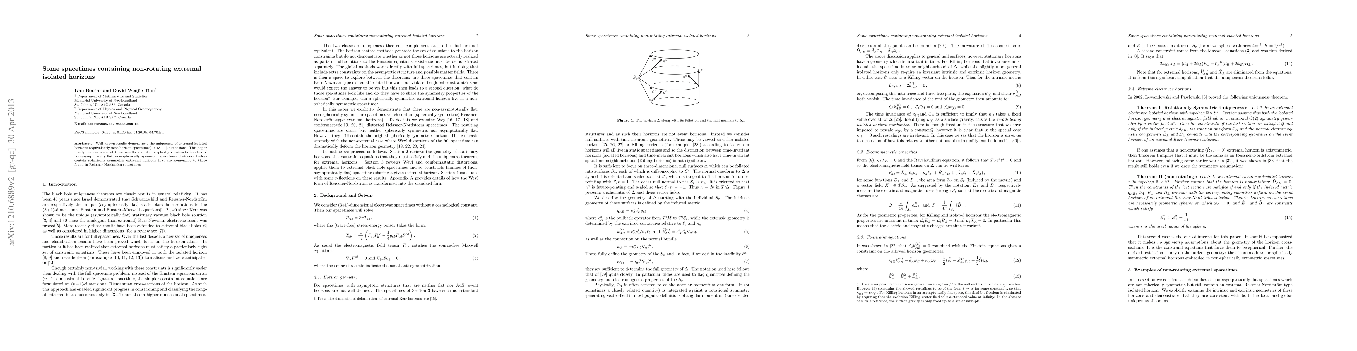 Well-known results demonstrate the uniqueness of extremal isolated horizons (equivalently near-horizon spacetimes) in (3+1)-dimensions. This paper briefly reviews some of these results and then explicitly constructs families of non-asymptotically flat, non-spherically symmetric spacetimes that nevertheless contain spherically symmetric extremal horizons that are isomorphic to those found in Reissner-Nordstrom spacetimes.