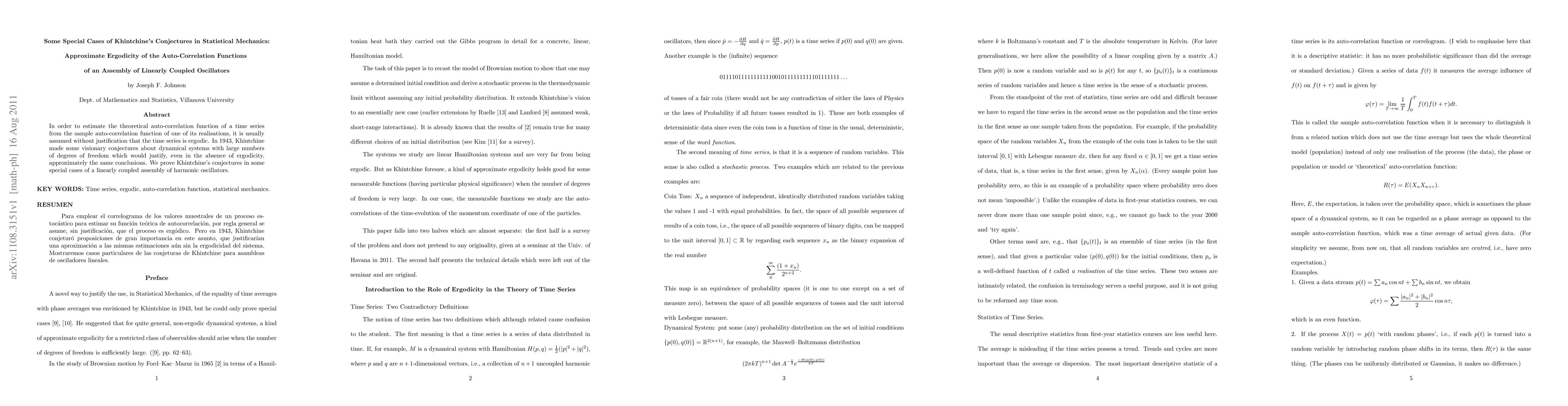 We give Sir James Jeans's notion of 'normal state' a mathematically precise definition. We prove that normal cells of trajectories exist in the Hamiltonian heat-bath model of an assembly of linearly coupled oscillators that generates the Ornstein--Uhlenbeck process in the limit of an infinite number of degrees of freedom. This, in some special cases, verifies some far-reaching conjectures of Khintchine on the weak ergodicity of a dynamical system with a large number of degrees of freedom. In order to estimate the theoretical auto-correlation function of a time series from the sample auto-correlation function of one of its realisations, it is usually assumed without justification that the time series is ergodic. Khintchine's conjectures about dynamical systems with large numbers of degrees of freedom justifies, even in the absence of ergodicity, approximately the same conclusions. Para emplear el correlograma de los valores muestrales de un proceso estoc\'astico para estimar su funci\'on te\'orica de autocorrelaci\'on, por regla general se asume, sin justificaci\'on, que el proceso es erg\'odico. Pero en 1943, Khintchine conjetur\'o proposiciones de gran importancia en este asunto, que justificar\'i an una aproximaci\'on a las mismas estimaciones a\'un sin la ergodicidad del sistema. Mostraremos casos particulares de las conjeturas de Khintchine para asambleas de osciladores lineales.