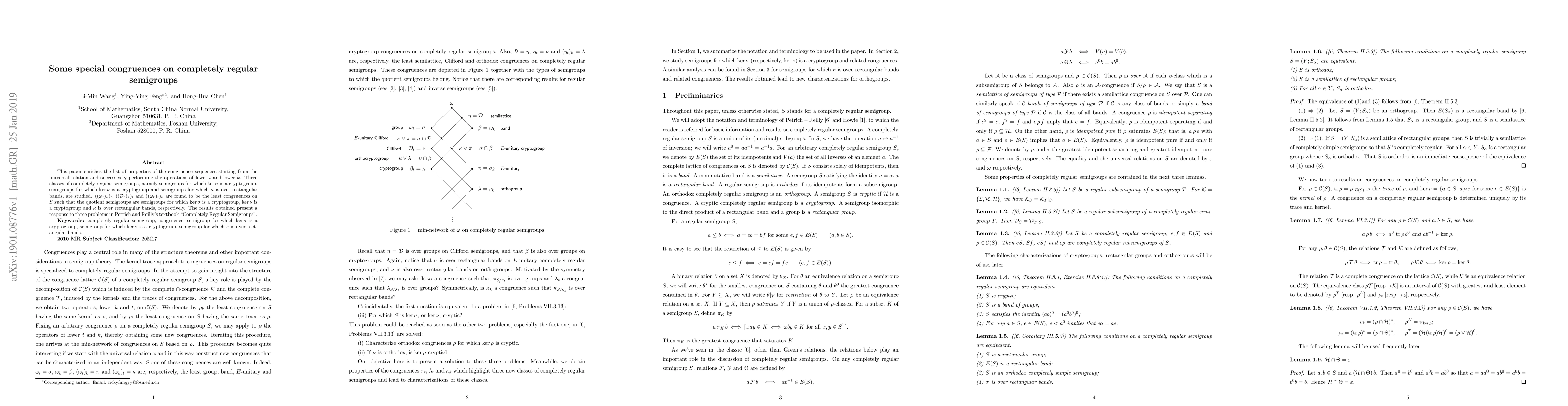 This paper enriches the list of properties of the congruence sequences starting from the universal relation and successively performing the operations of lower $t$ and lower $k$. Three classes of completely regular semigroups, namely semigroups for which $\ker{\sigma}$ is a cryptogroup, semigroups for which $\ker{\nu}$ is a cryptogroup and semigroups for which $\kappa$ is over rectangular bands, are studied. $((\omega_t)_k)_t$, $((\mathcal{D}_t)_k)_t$ and $((\omega_k)_t)_k$ are found to be the least congruences on $S$ such that the quotient semigroups are semigroups for which $\ker{\sigma}$ is a cryptogroup, $\ker{\nu}$ is a cryptogroup and $\kappa$ is over rectangular bands, respectively. The results obtained present a response to three problems in Petrich and Reilly's textbook \textquoteleft\textquoteleft Completely Regular Semigroups\textquoteright\textquoteright.