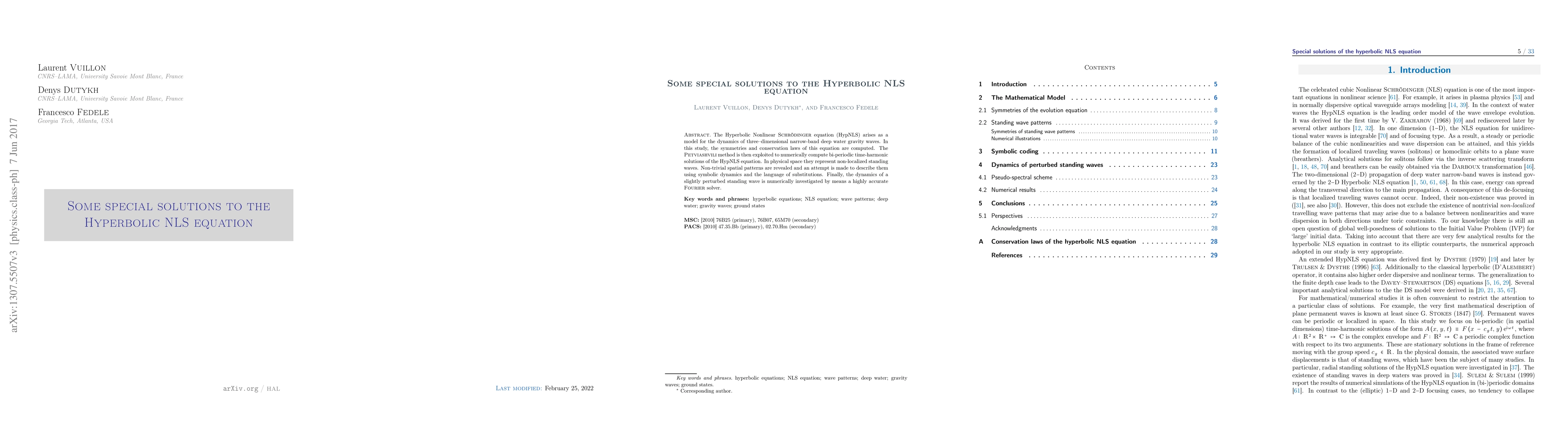 The Hyperbolic Nonlinear Schrodinger equation (HypNLS) arises as a model for the dynamics of three-dimensional narrowband deep water gravity waves. In this study, the Petviashvili method is exploited to numerically compute bi-periodic time-harmonic solutions of the HypNLS equation. In physical space they represent non-localized standing waves. Non-trivial spatial patterns are revealed and an attempt is made to describe them using symbolic dynamics and the language of substitutions. Finally, the dynamics of a slightly perturbed standing wave is numerically investigated by means a highly acccurate Fourier solver.