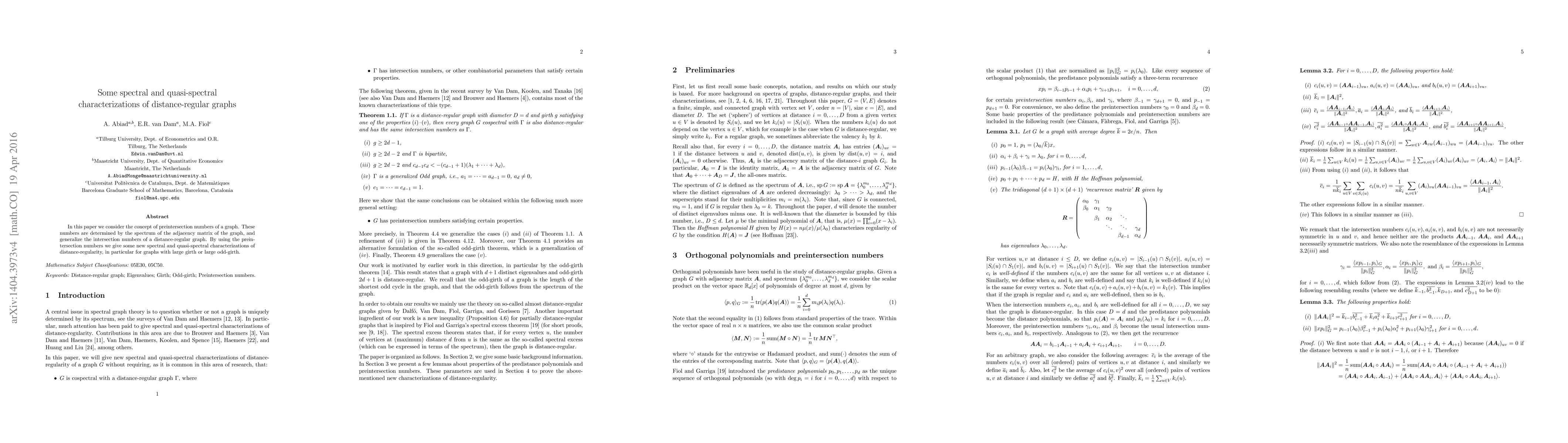 In this paper we consider the concept of preintersection numbers of a graph. These numbers are determined by the spectrum of the adjacency matrix of the graph, and generalize the intersection numbers of a distance-regular graph. By using the preintersection numbers we give some new spectral and quasi-spectral characterizations of distance-regularity, in particular for graphs with large girth or large odd-girth.