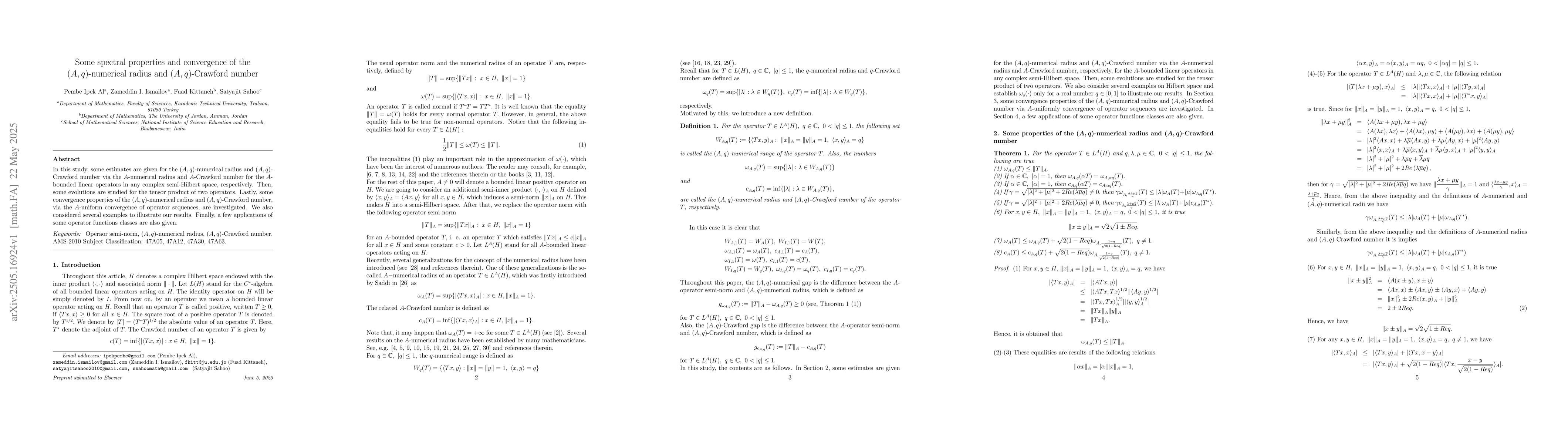This research contributes to understanding spectral properties and convergence of (A,q)-numerical radius and (A,q)-Crawford number, which can have implications in operator theory and functional analysis.
