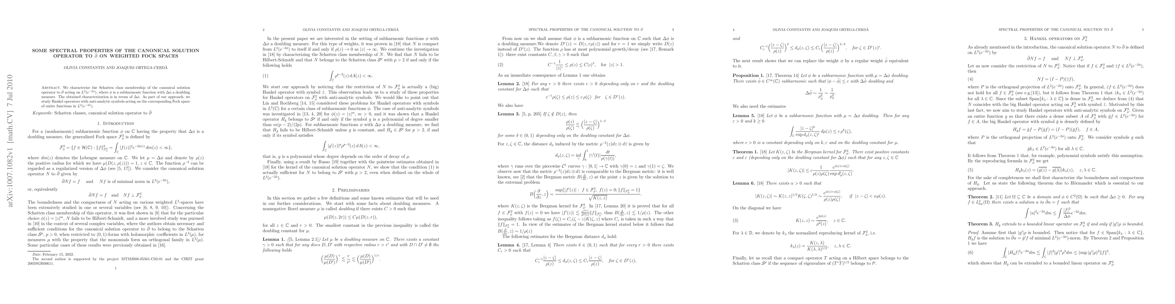 We characterize the Schatten class membership of the canonical solution operator to $\bar\partial$ acting on $L^2(e^{-2\phi})$, where $\phi$ is a subharmonic function with $\Delta\phi$ a doubling measure. The obtained characterization is in terms of $\Delta\phi$. As part of our approach, we study Hankel operators with anti-analytic symbols acting on the corresponding Fock space of entire functions in $L^2(e^{-2\phi})$.