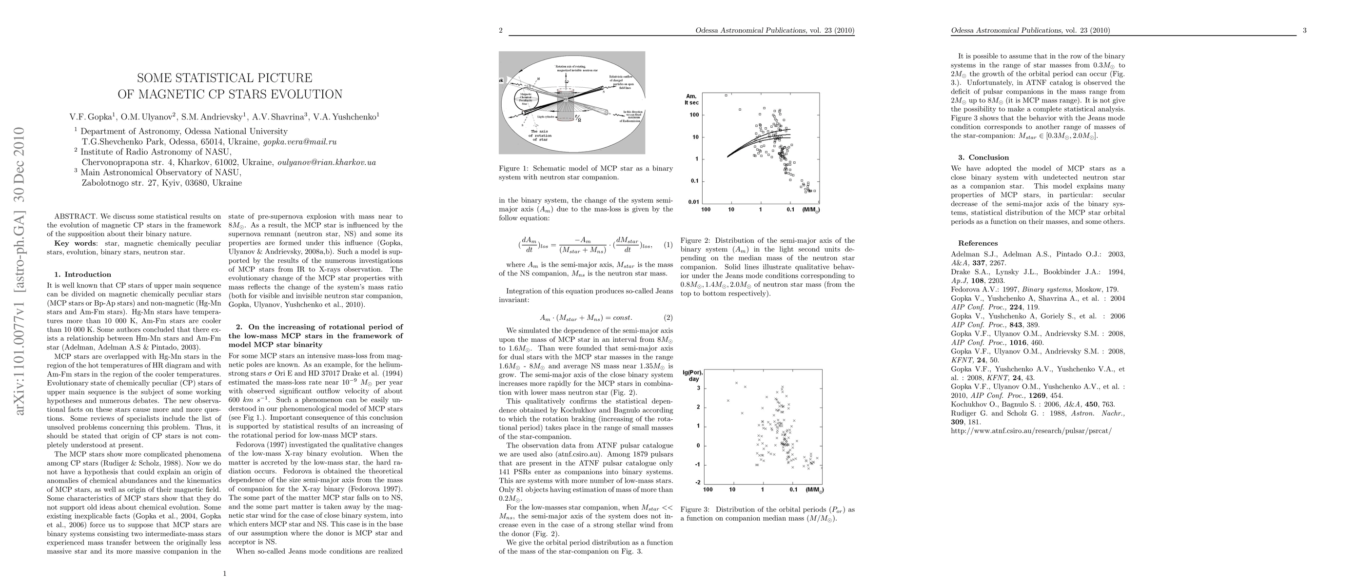 We discuss some statistical results on the evolution of magnetic CP stars in the framework of the supposition about their binary nature.