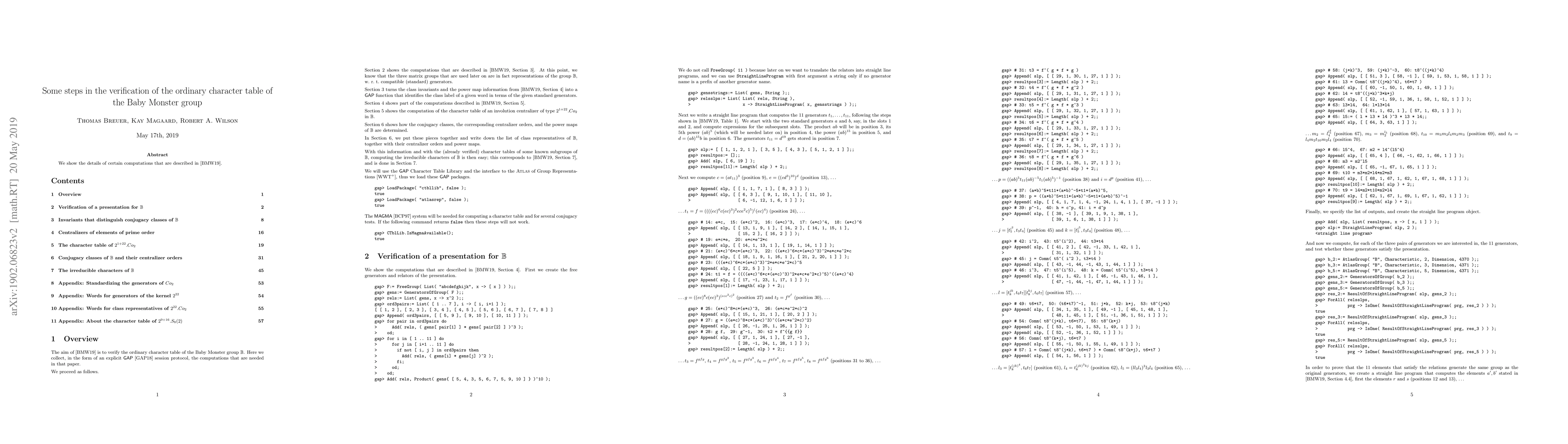 Summary: This paper provides detailed computational steps for verifying parts of the ordinary character table of the Baby Monster group, complementing the broader methodology outlined in [BMW19]. It focuses on specific calculations that underpin the group's character theory.