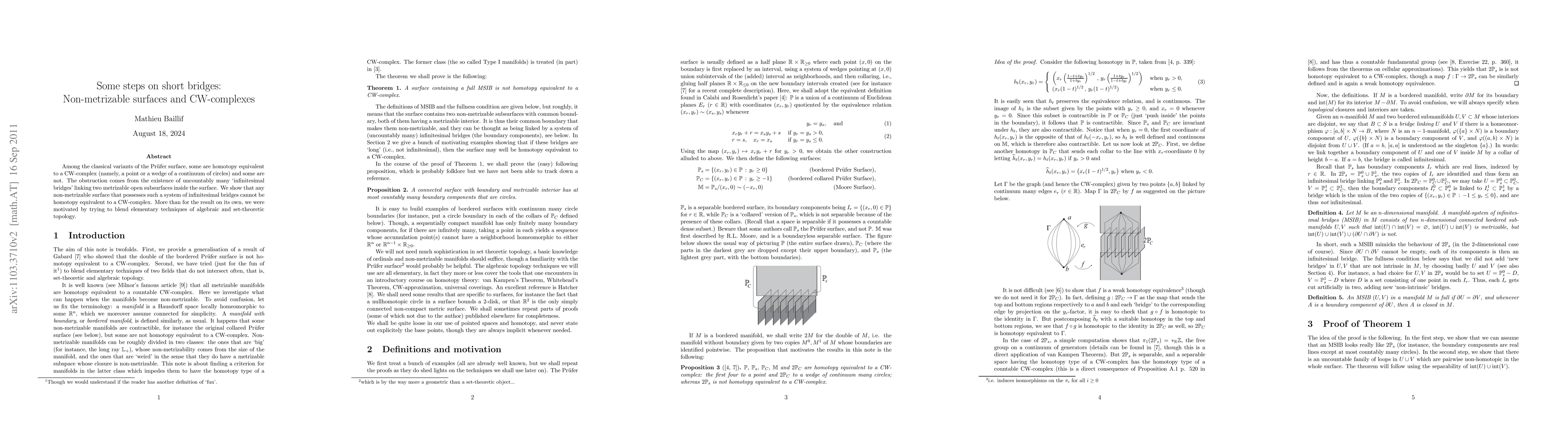Among the classical variants of the Pr\"ufer surface, some are homotopy equivalent to a CW-complex (namely, a point or a wedge of a continuum of circles) and some are not. The obstruction comes from the existence of uncountably many `infinitesimal bridges' linking two metrizable open subsurfaces inside the surface. We show that any non-metrizable surface that possesses such a system of infinitesimal bridges cannot be homotopy equivalent to a CW-complex. More than for the result on its own, we were motivated by trying to blend elementary techniques of algebraic and set-theoretic topology.