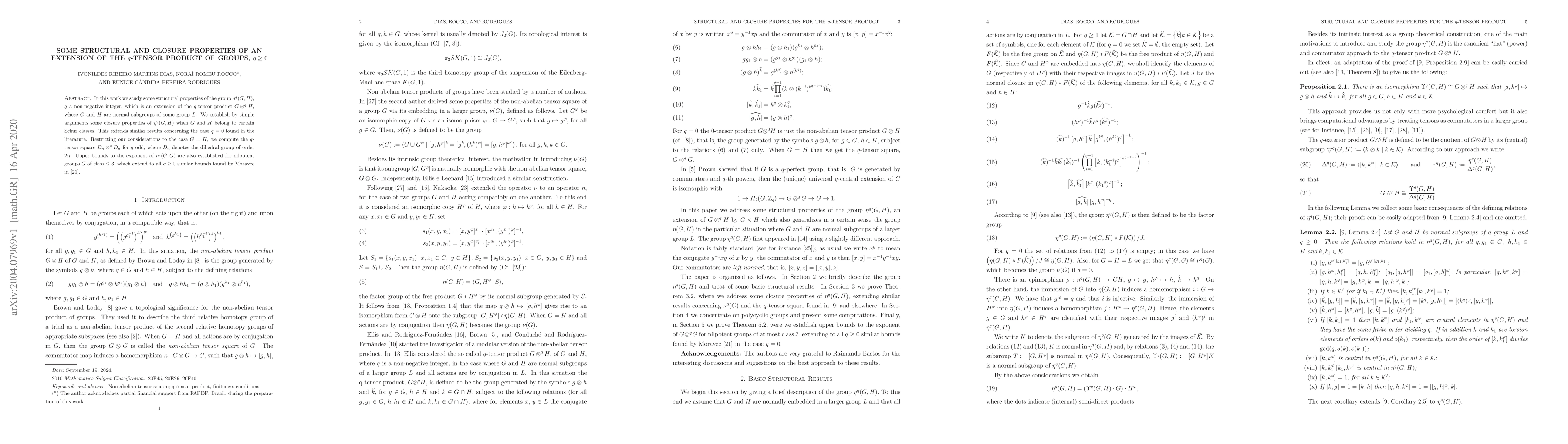 In this work we study some structural properties of the group $\eta^q(G, H)$, $q$ a non-negative integer, which is an extension of the $q$-tensor product $G \otimes^q H)$, where $G$ and $H$ are normal subgroups of some group $L$. We establish by simple arguments some closure properties of $\eta^q(G,H)$ when $G$ and $H$ belong to certain Schur classes. This extends similar results concerning the case $q = 0$ found in the literature. Restricting our considerations to the case $G = H$, we compute the $q$-tensor square $D_n \otimes^q D_n$ for $q$ odd, where $D_n$ denotes the dihedral group of order $2n$. Upper bounds to the exponent of $G \otimes^q G$ are also established for nilpotent groups $G$ of class $\leq 3$, which extend to all $q \geq 0$ similar bound found by Moravec in [21].