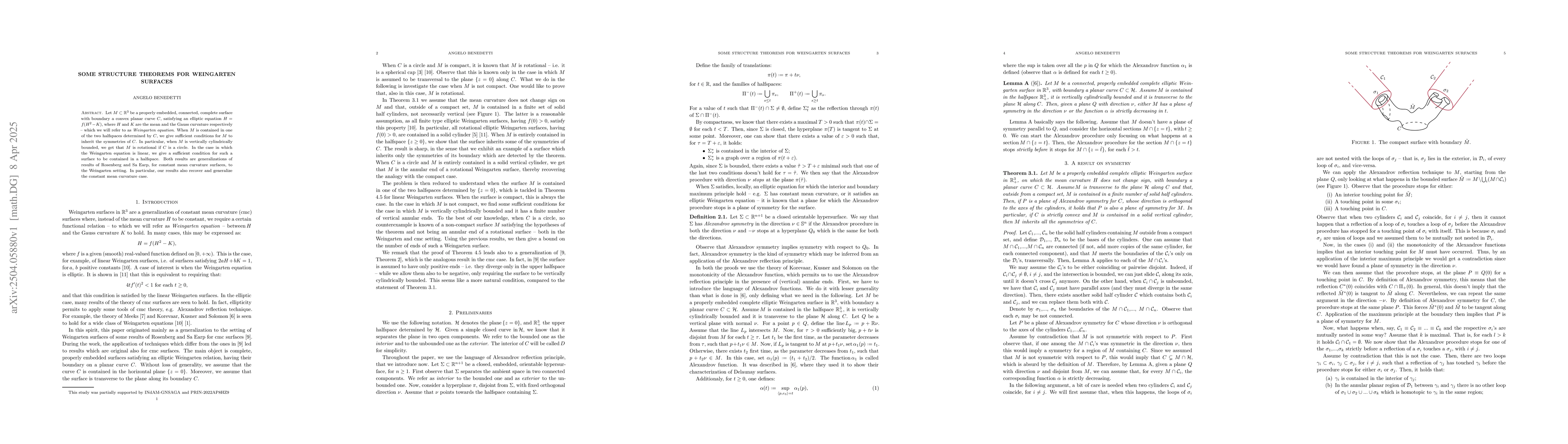 The paper presents structure theorems for Weingarten surfaces, providing new insights into their symmetries and geometric properties, and extends known results for constant mean curvature surfaces.