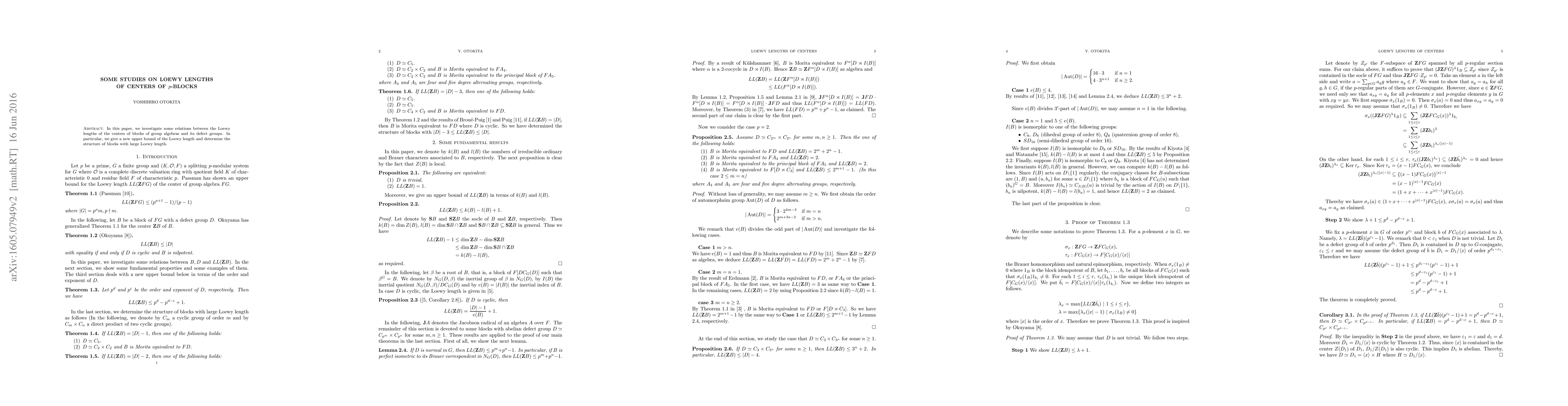 This paper explores connections between Loewy lengths of group algebra block centers and their defect groups, providing a new upper bound for Loewy lengths and identifying the structure of blocks with particularly large Loewy lengths.