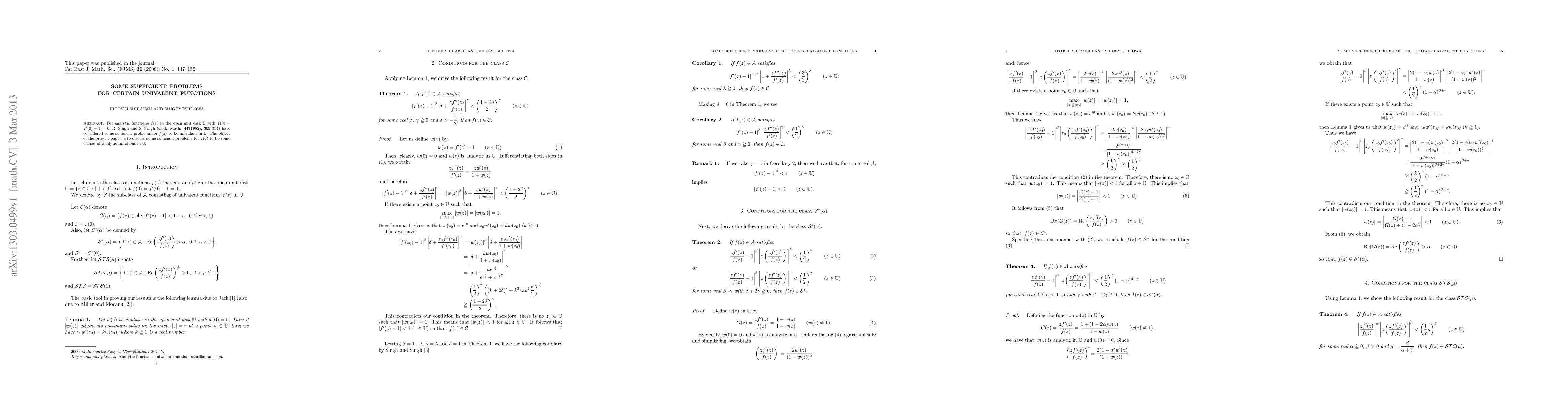 For analytic functions f(z) in the open unit disk U with f(0)=f'(0)-1=0, R. Singh and S. Singh (Coll. Math. 47(1982), 309-314) have considered some sufficient problems for f(z) to be univalent in U. The object of the present paper is to discuss some sufficient problems for f(z) to be some classes of analytic functions in U.