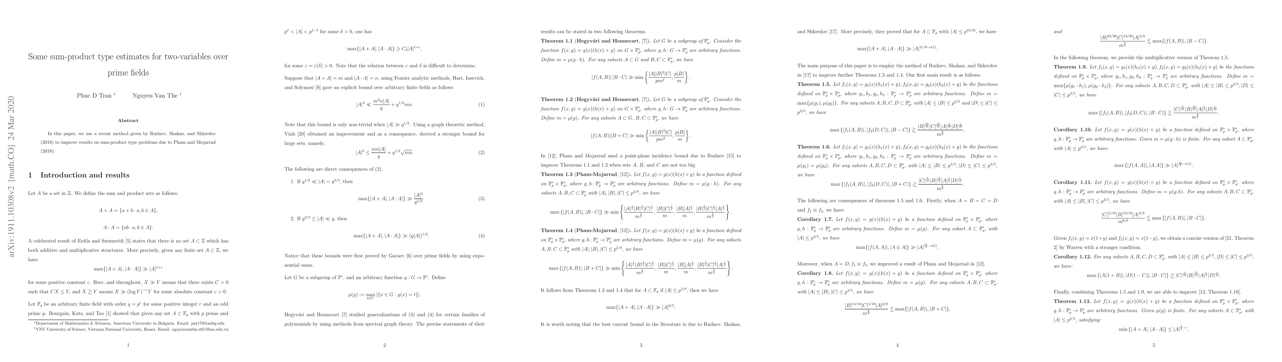 Researchers improve estimates for sum-product type problems over prime fields using a recent method from Rudnev et al. (2018), leading to better results for certain mathematical applications.