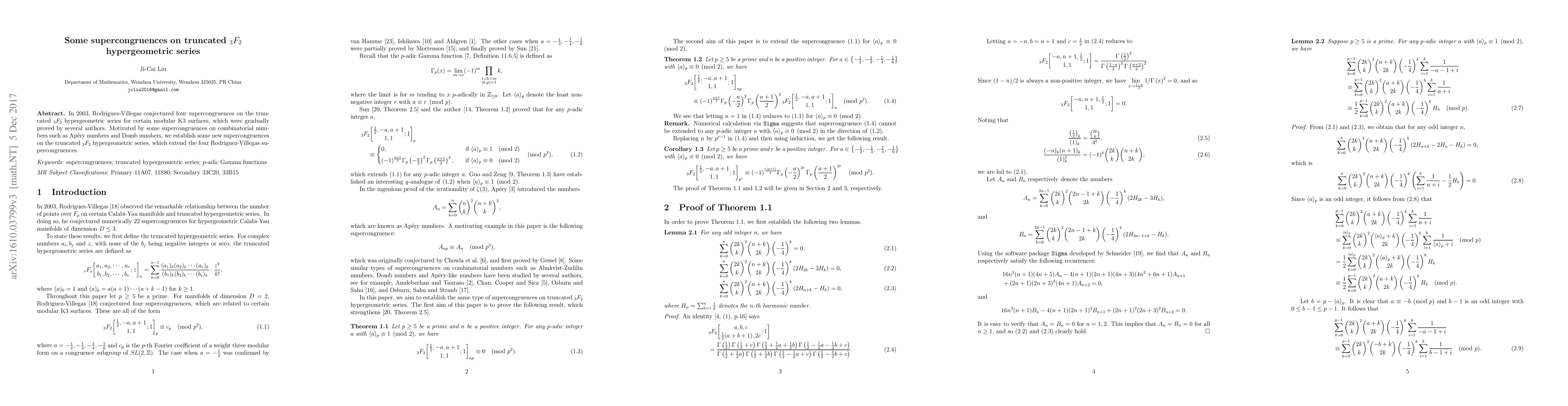 The paper establishes new supercongruences for truncated ${}_3F_2$ hypergeometric series, extending previous results conjectured by Rodriguez-Villegas in 2003 and building on recent findings related to Apéry and Domb numbers. These new results deepen the understanding of the series' behavior under modular transformations.