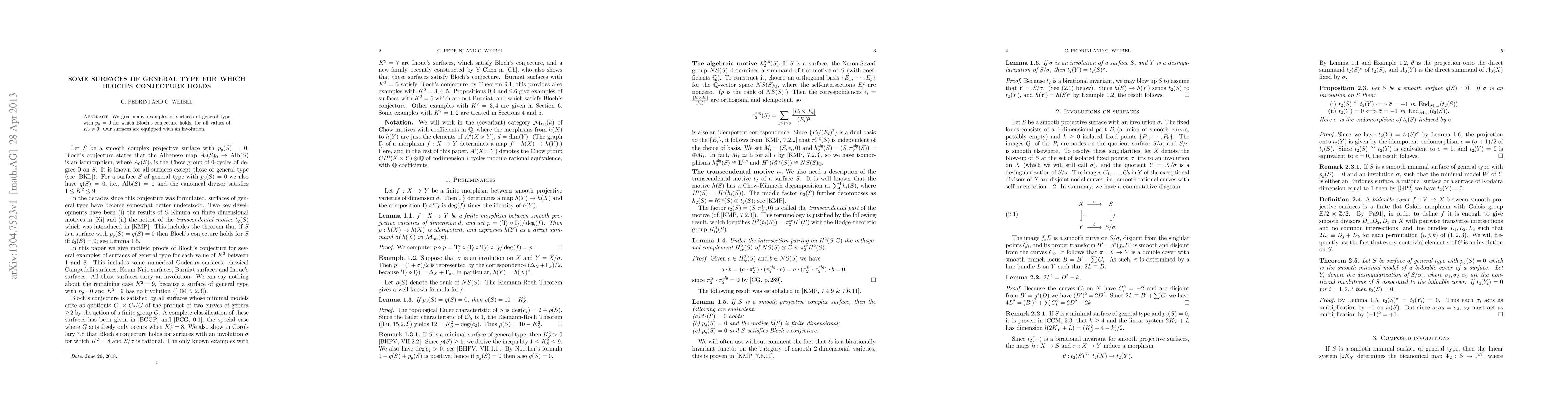Summary: This paper presents numerous examples of surfaces of general type with $p_g=0$ where Bloch's conjecture is valid, except when $K^2$ equals 9, and these surfaces possess an involution.