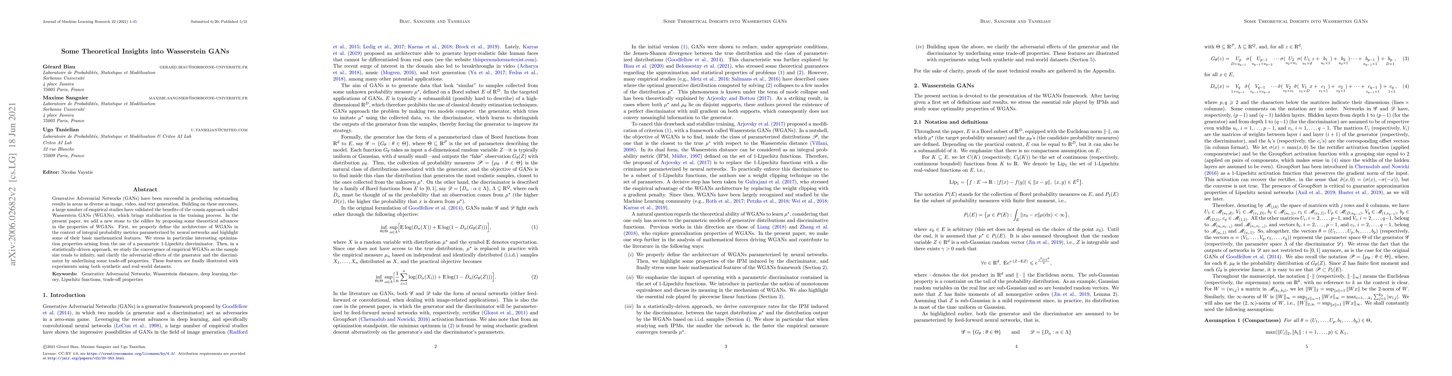 This paper advances theoretical understanding of Wasserstein GANs (WGANs), a type of Generative Adversarial Network that stabilizes training through integral probability metrics. The study reveals optimization properties and convergence characteristics, shedding light on the trade-offs between generator and discriminator performances.