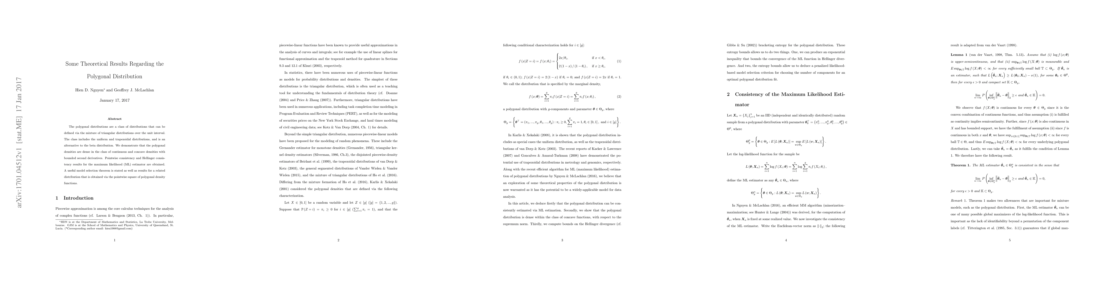 This paper explores polygonal distributions, a mixture-based alternative to the beta distribution, showing their density in continuous and concave functions. It also proves pointwise and Hellinger consistency for the maximum likelihood estimator and presents a model selection theorem.