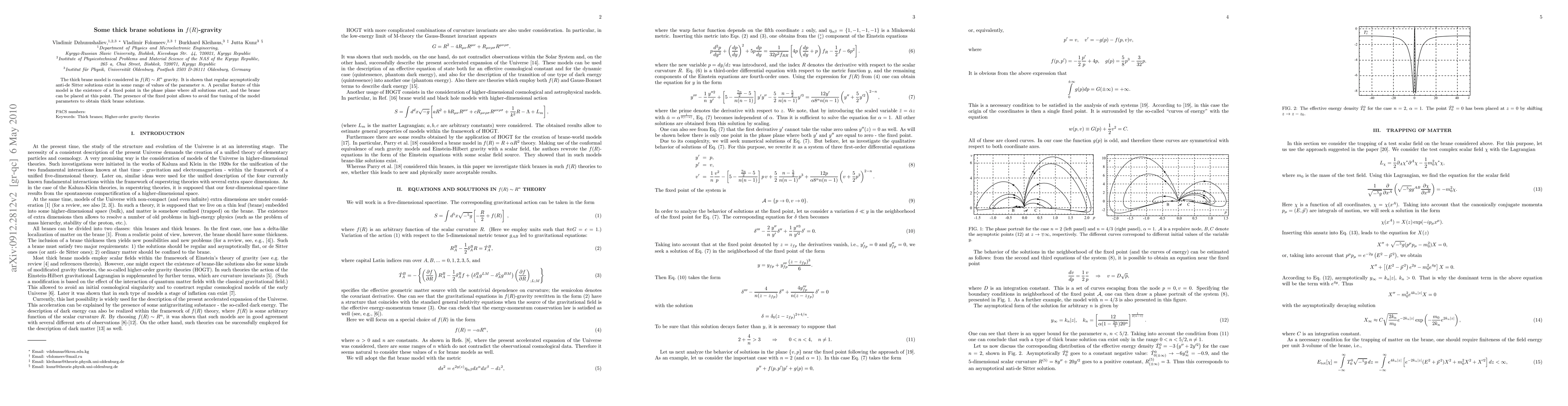 This paper explores thick brane solutions in $f(R)\sim R^n$ gravity, demonstrating the existence of regular asymptotically anti-de Sitter solutions within a specific range of $n$. A notable feature is the fixed point in the phase plane, which eliminates the need for fine-tuning parameters to achieve thick brane configurations.