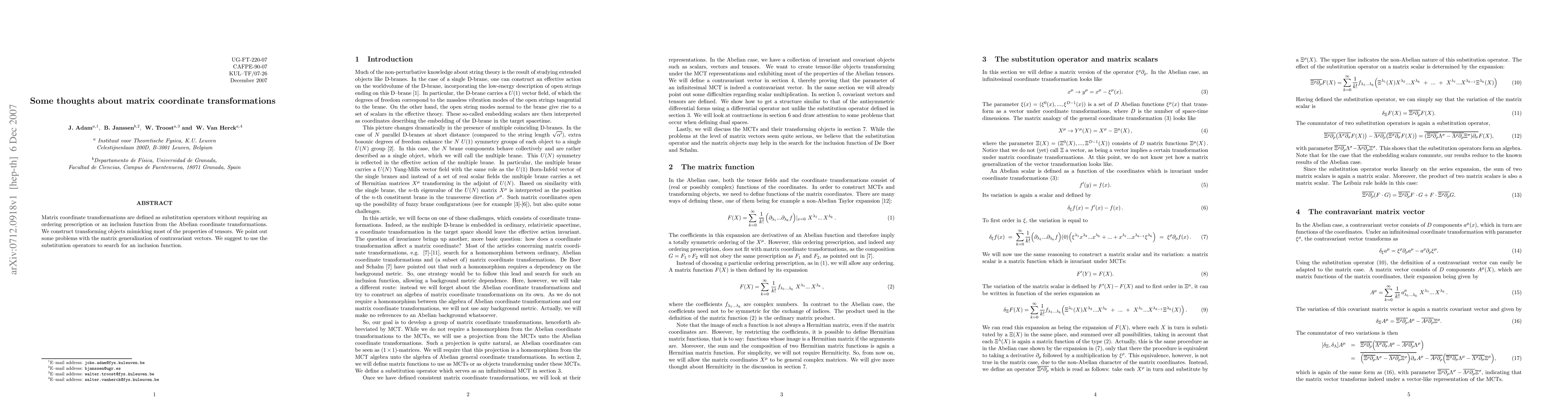 Summary: This paper explores matrix coordinate transformations as substitution operators, highlighting their properties akin to tensors and discussing issues with the generalization of contravariant vectors, while proposing the use of substitution operators to find an inclusion function.