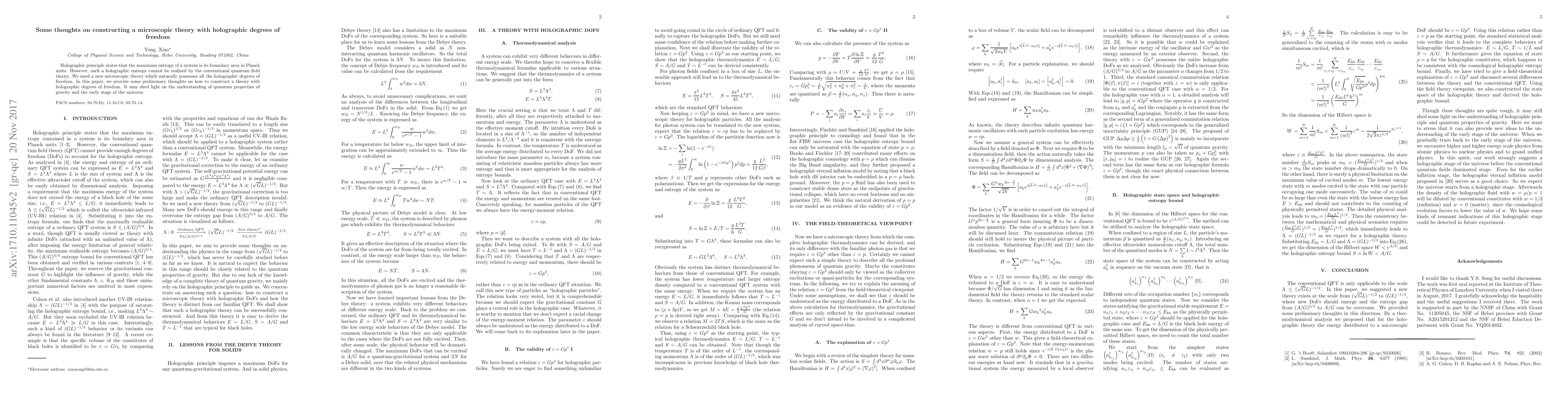 Researchers propose a new microscopic theory that incorporates holographic degrees of freedom, potentially shedding light on quantum properties of gravity and the early universe. A preliminary framework for this theory is presented, which could help understand the fundamental laws of physics.