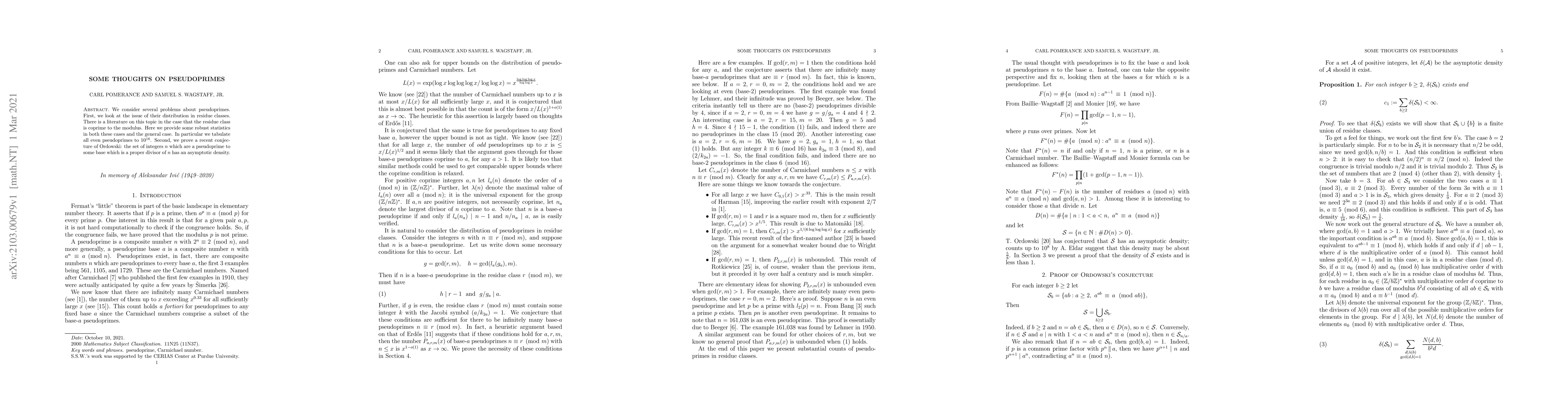 Researchers studied pseudoprimes, a type of number that can pass a primality test for certain bases, tabulating all even pseudoprimes up to 10^16 and proving a conjecture about their distribution and asymptotic density.