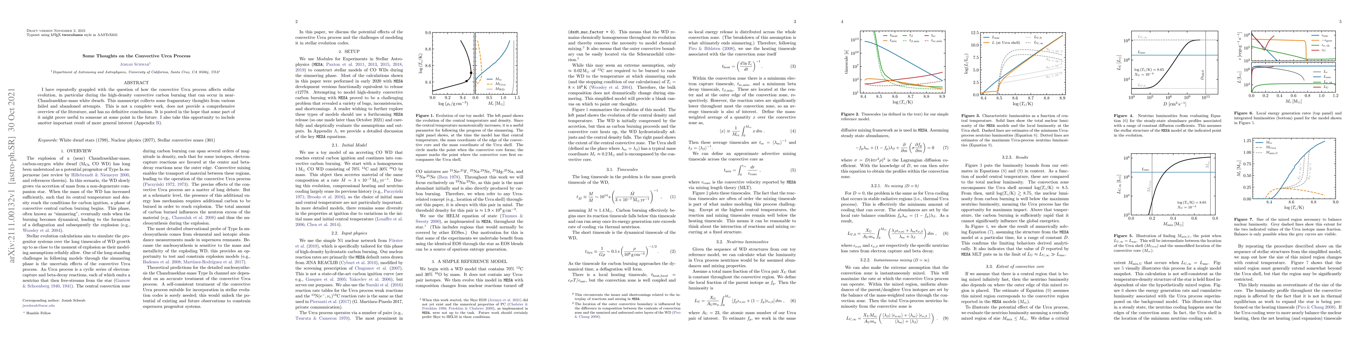 I have repeatedly grappled with the question of how the convective Urca process affects stellar evolution, in particular during the high-density convective carbon burning that can occur in near-Chandrasekhar-mass white dwarfs. This manuscript collects some fragmentary thoughts from various failed and abandoned attempts. This is not a complete work, does not provide a comprehensive overview of the literature, and has no definitive conclusions. It is posted in the hope that some part of it might prove useful to someone at some point in the future. I also take this opportunity to include anotter important result of more general interest (Appendix B).