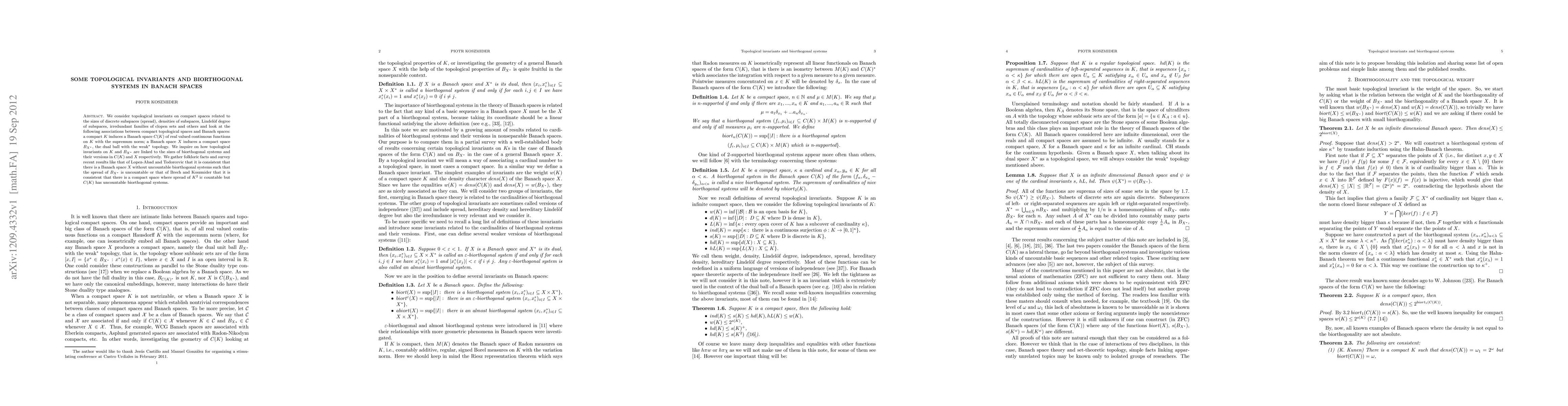 This paper explores the connections between topological invariants of compact spaces and Banach spaces, focusing on biorthogonal systems and their sizes.