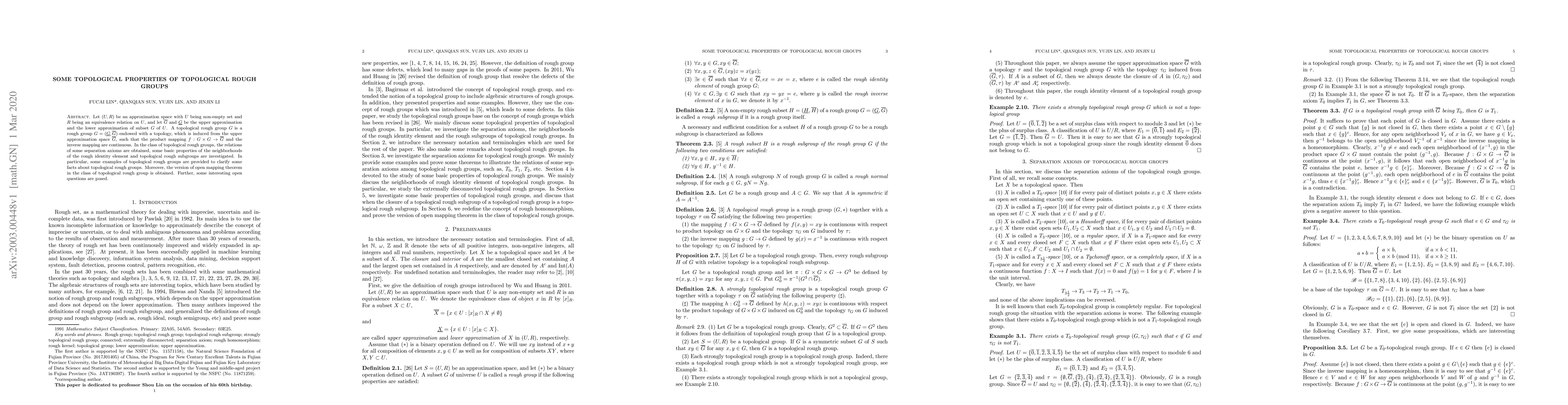 The research investigates topological properties of topological rough groups, defining such groups as rough groups endowed with a topology induced from the upper approximation space, ensuring the continuity of product and inverse mappings.
