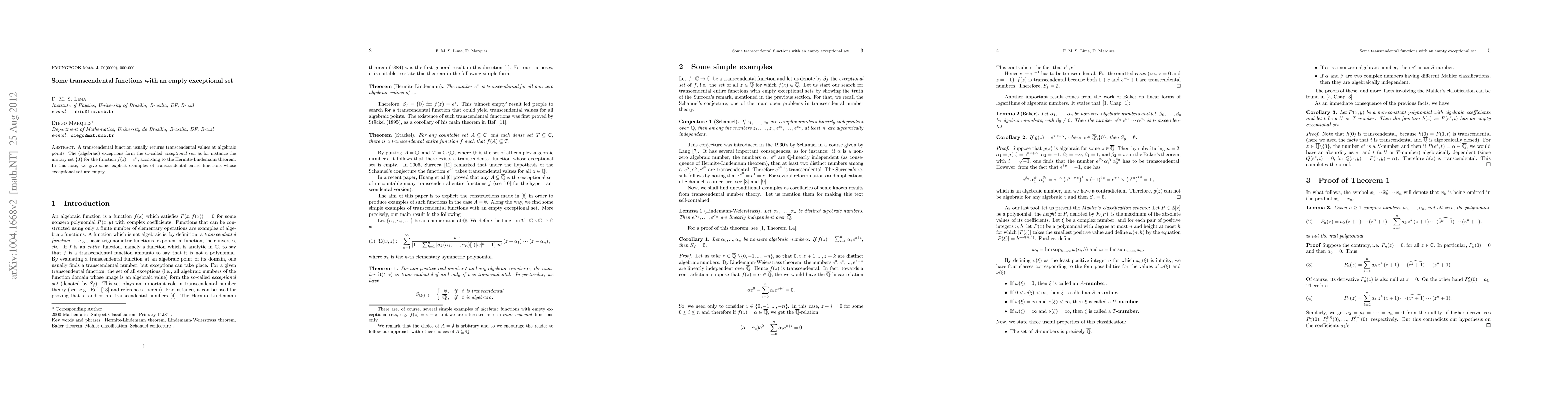 This paper presents explicit examples of transcendental entire functions that do not have any algebraic points where they return transcendental values, thus having an empty exceptional set. These findings challenge traditional understanding of transcendental functions and their exceptional sets.