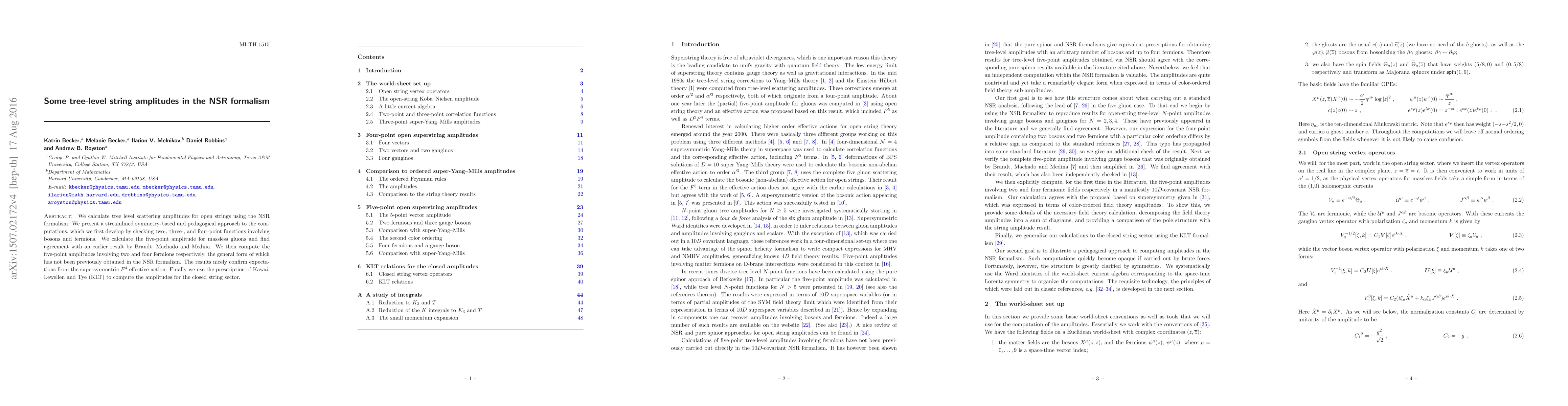 This paper calculates tree-level scattering amplitudes for open strings using the NSR formalism, presenting a new symmetry-based approach for computing two-, three-, and four-point functions. It confirms previously known five-point amplitudes for massless gluons and introduces new five-point amplitudes involving fermions, aligning with supersymmetric expectations.