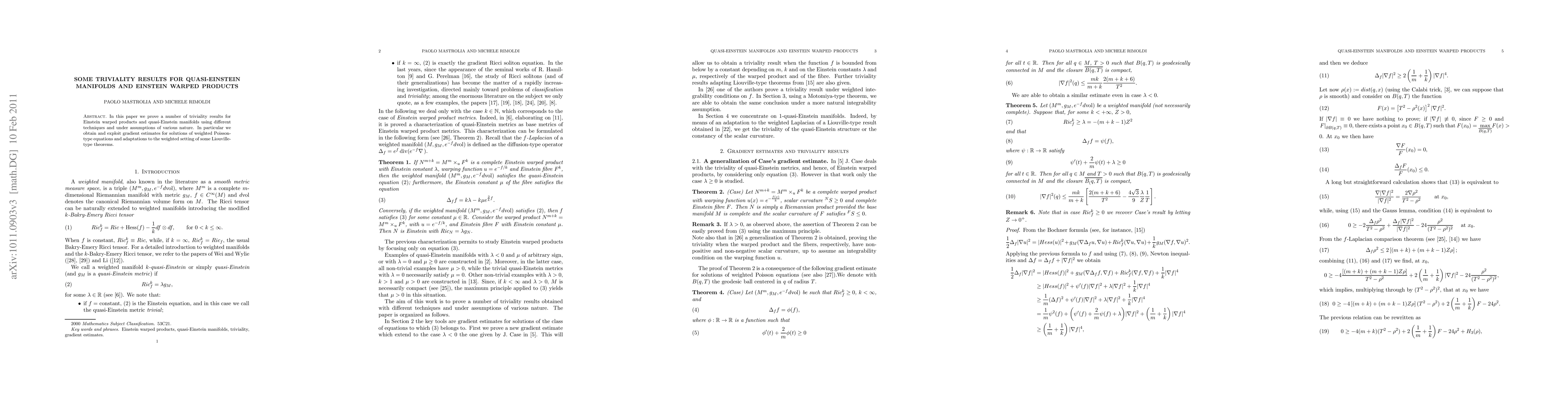 In this paper we prove a number of triviality results for Einstein warped products and quasi-Einstein manifolds using different techniques and under assumptions of various nature. In particular we obtain and exploit gradient estimates for solutions of weighted Poisson-type equations and adaptations to the weighted setting of some Liouville-type theorems.