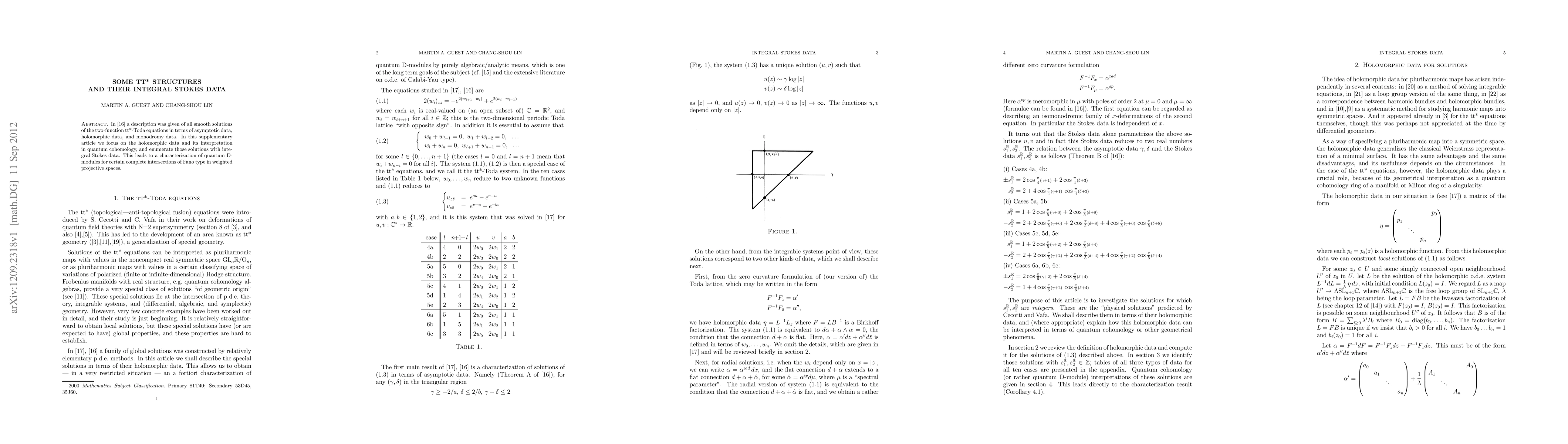 In "Isomonodromy aspects of the tt* equations of Cecotti and Vafa I. Stokes data" (arxiv:1209.2045) we described all smooth solutions of the two-function tt*-Toda equations in terms of asymptotic data, holomorphic data, and monodromy data. In this supplementary article we focus on the holomorphic data and its interpretation in quantum cohomology, and enumerate those solutions with integral Stokes data. This leads to a characterization of quantum D-modules for certain complete intersections of Fano type in weighted projective spaces.