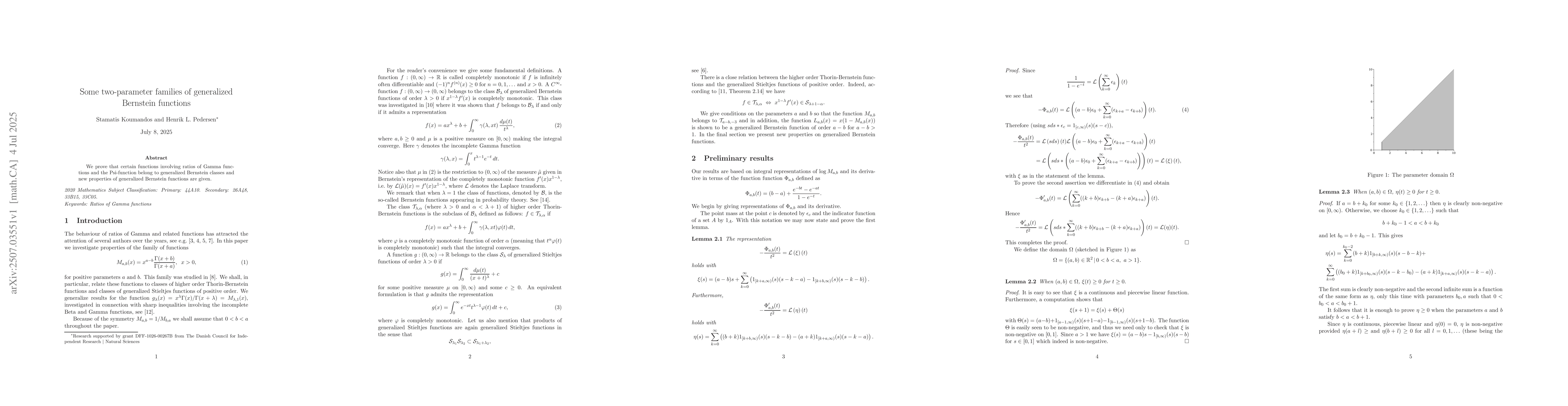 We prove that certain functions involving ratios of Gamma functions and the Psi-function belong to generalized Bernstein classes and new properties of generalized Bernstein functions are given.