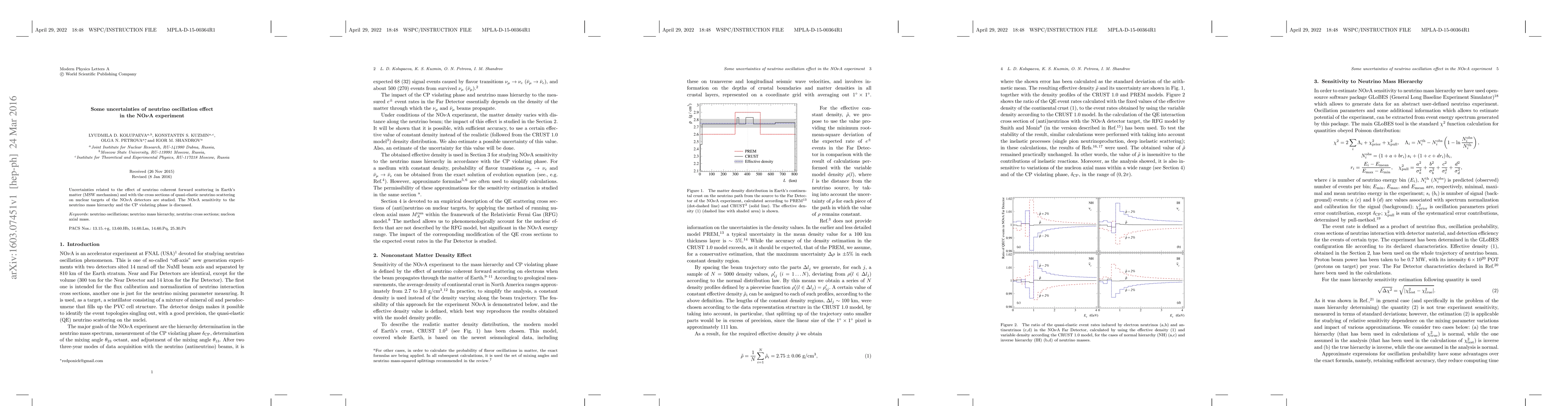 This paper investigates uncertainties in the NO$\nu$A experiment related to neutrino coherent forward scattering and quasi-elastic neutrino scattering cross sections. It also examines NO$\nu$A's sensitivity to neutrino mass hierarchy and CP violation.