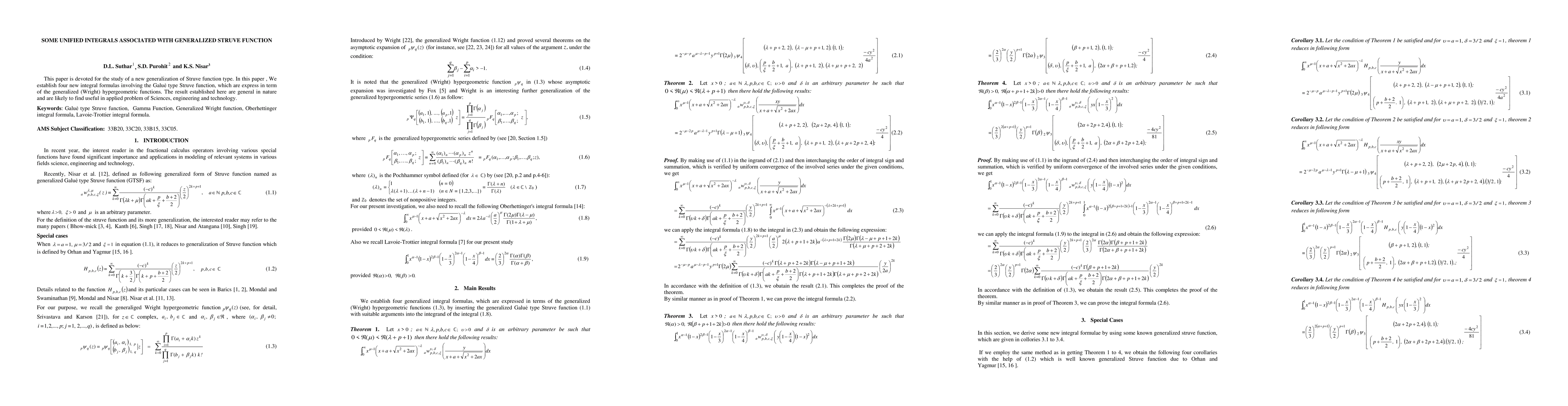 This paper is devoted for the study of a new generalization of Struve function type. In this paper , We establish four new integral formulas involving the Galue type Struve function, which are express in term of the generalized (Wright) hypergeometric functions. The result established here are general in nature and are likely to find useful in applied problem of Sciences, engineering and technology.
