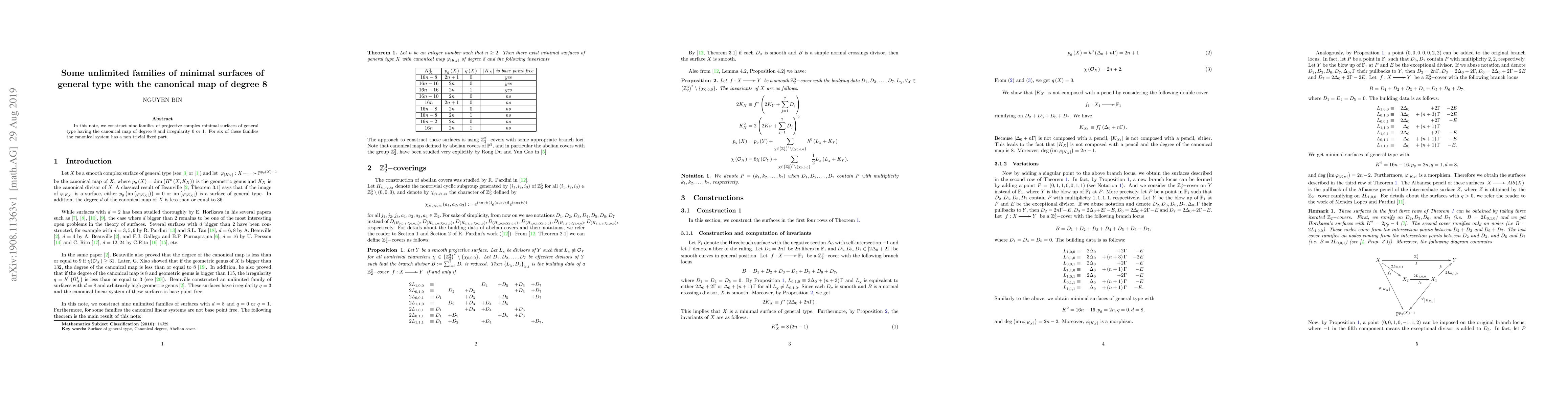 Researchers discover nine families of minimal surfaces with a specific map degree and irregularity, offering new insights into complex geometry.