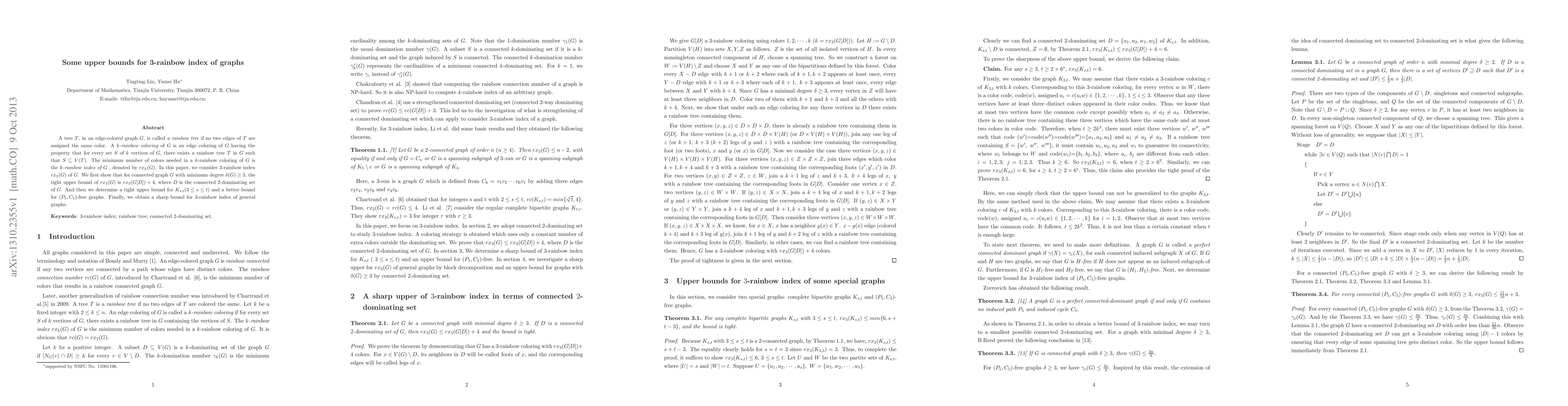 This paper investigates the 3-rainbow index $rx_3(G)$ of graphs, establishing tight upper bounds for connected graphs with minimum degree $\delta(G)\geq 3$ and specific graph structures, including $K_{s,t}$ and $(P_5,C_5)$-free graphs, and provides a sharp bound for general graphs.